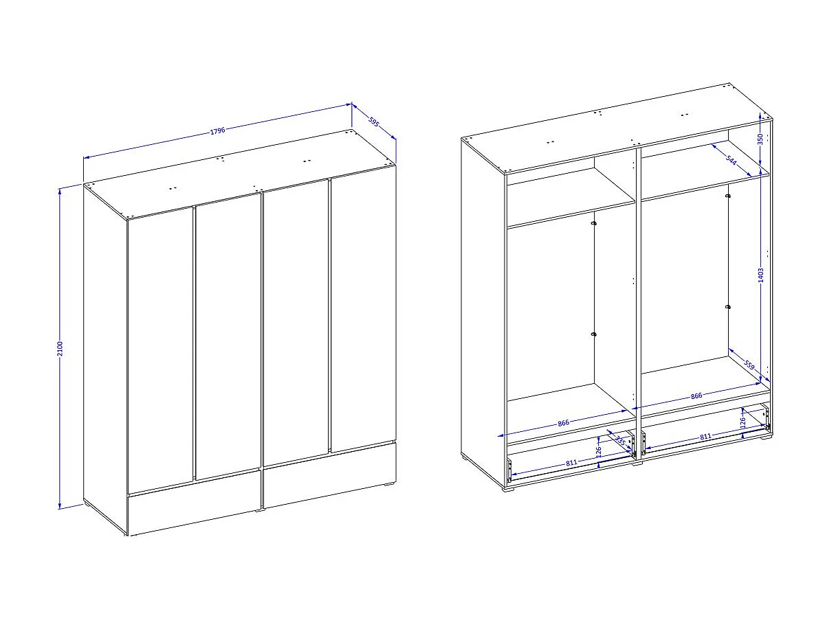Chambre complète HAVANA chêne et noir – Lit 180x200, armoire 4 portes, chevets et commode