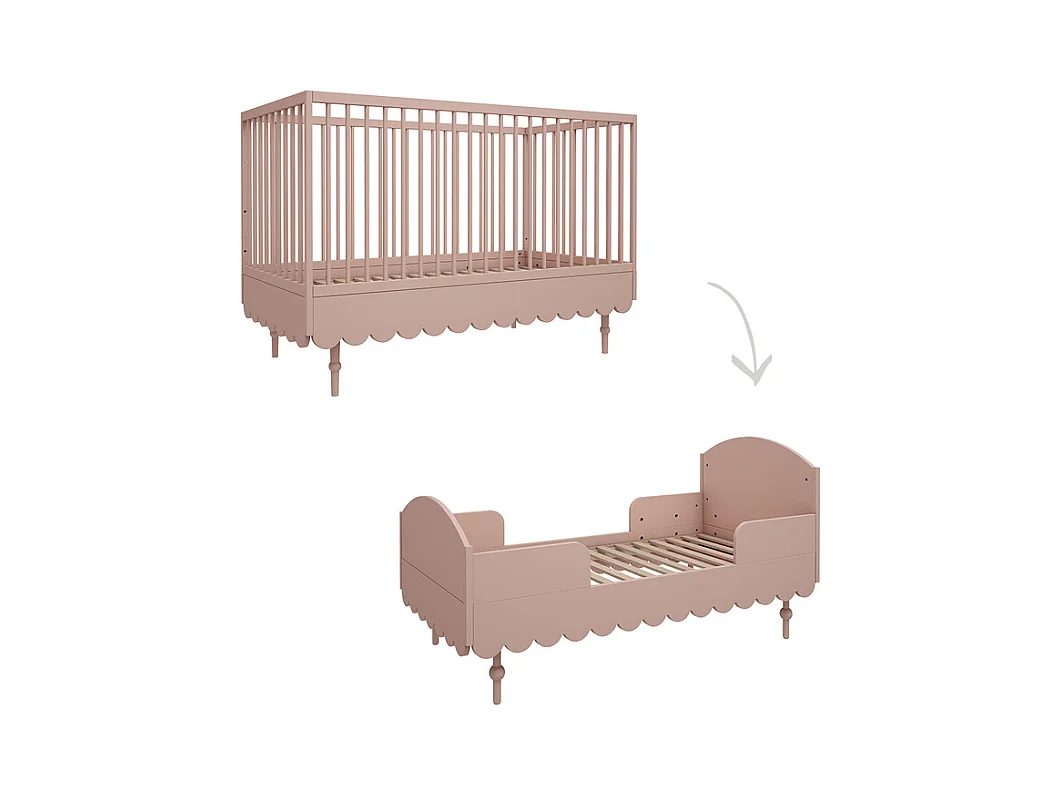 Chambre complète lit évolutif 70x140 commode à langer et armoire 2 portes Babushka Rose