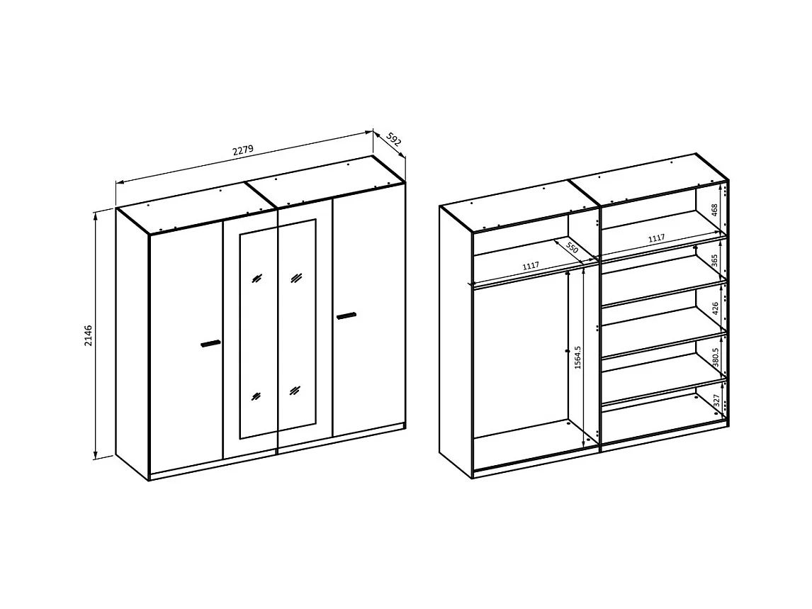 Chambre complète VERTIGO – Lit 180x200 avec sommier, 2 chevets, armoire 4 portes + contour design