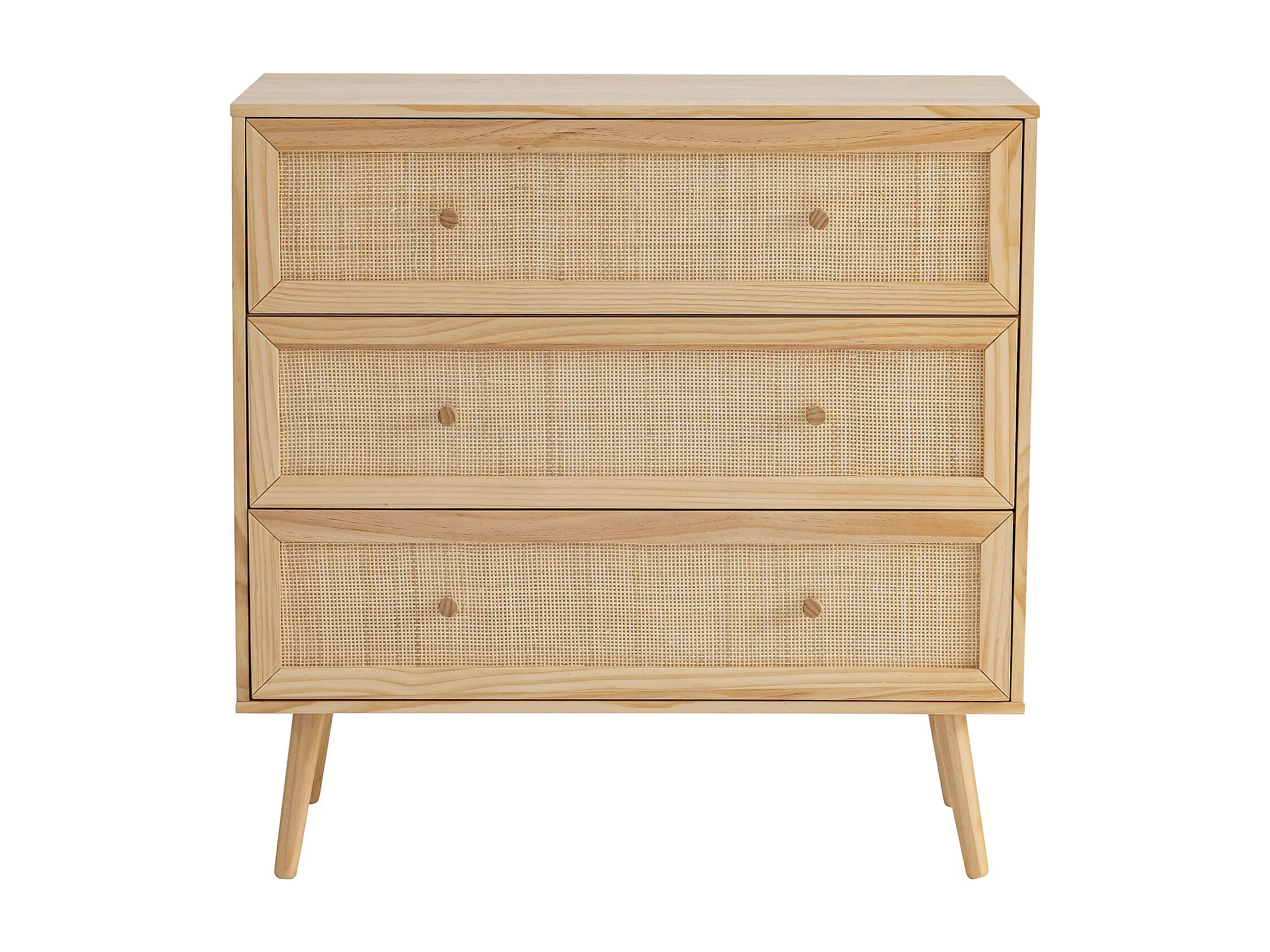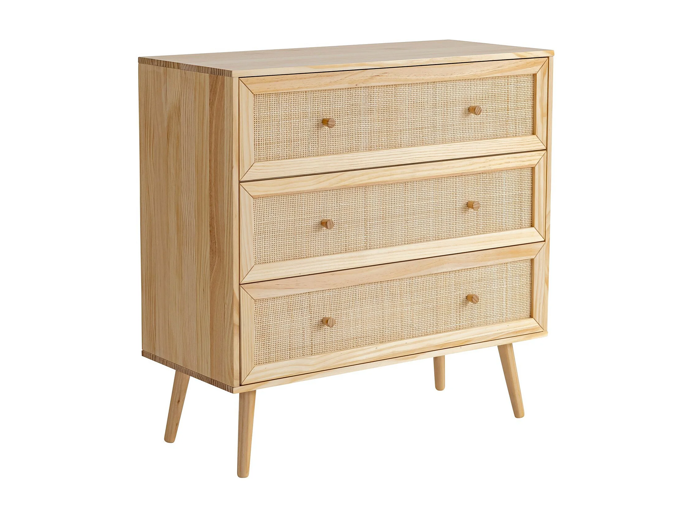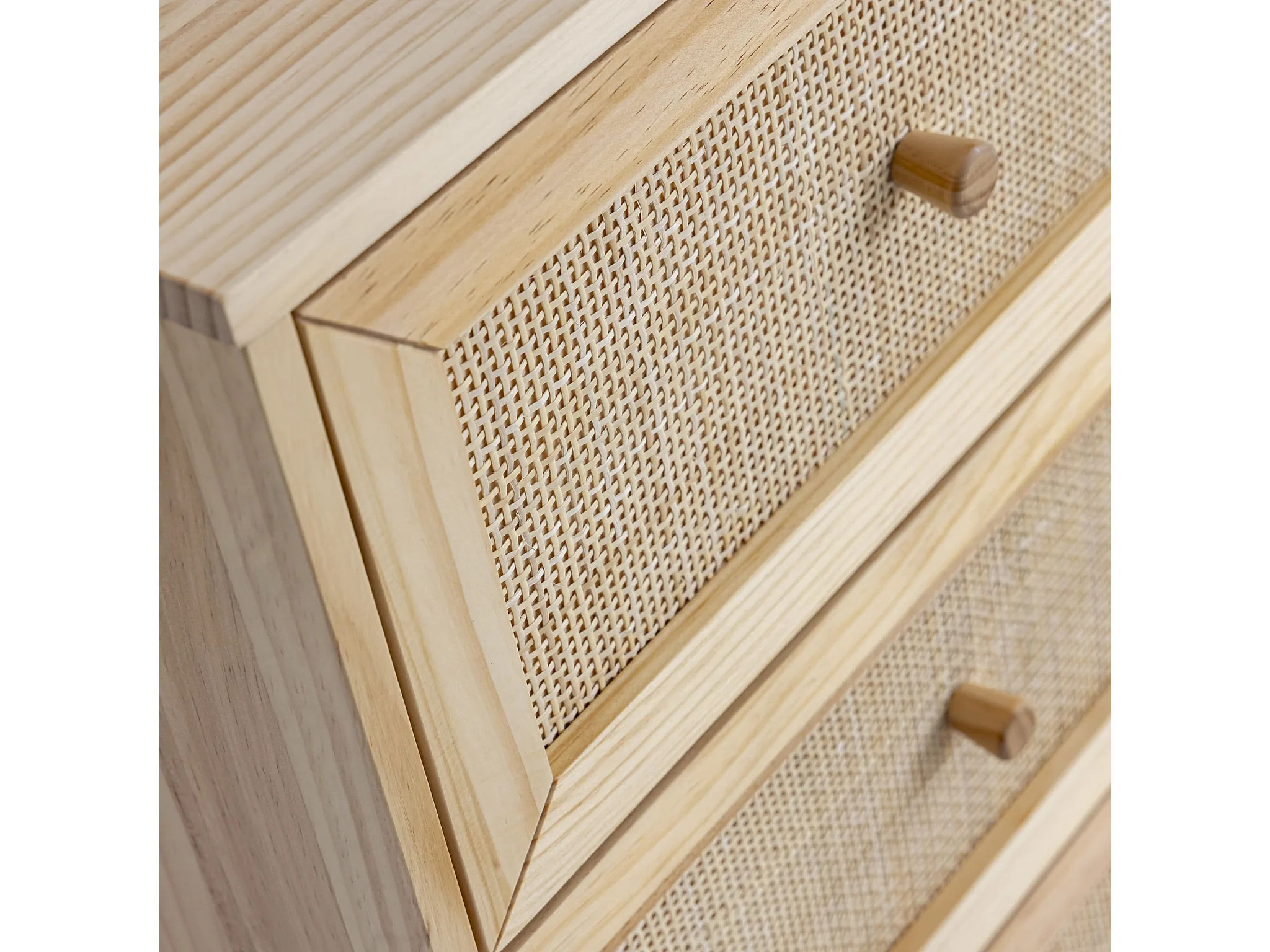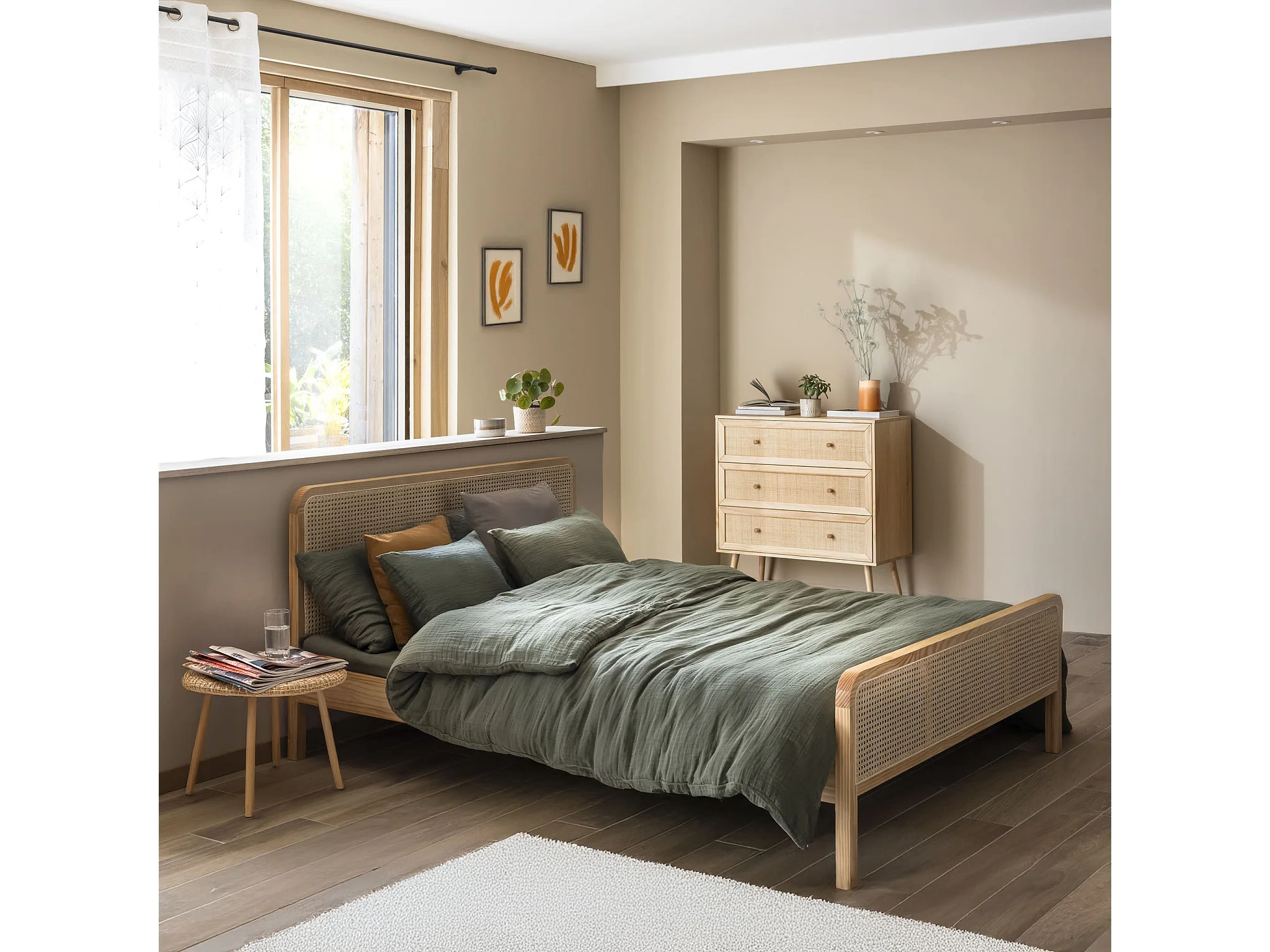 Chambre lit cannage avec commode bois naturel ANNA 140x190 - ANNA