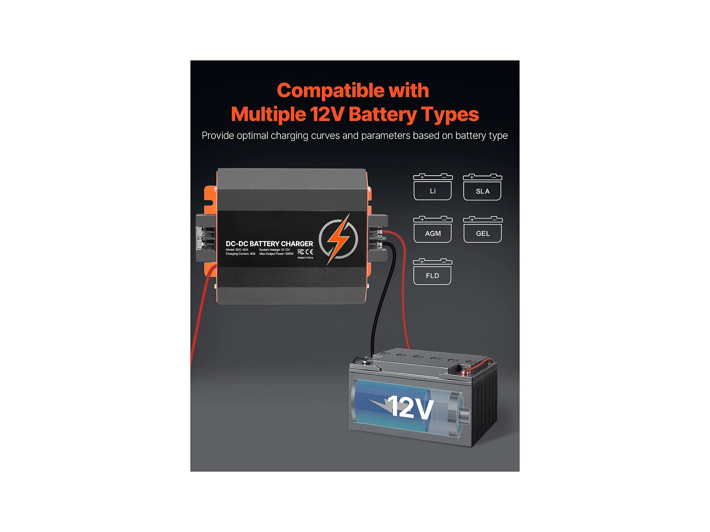 Chargeur SucceBuy 12V 20A DC/DC, 250W, Adapté aux Batteries Plomb-Acide, Lithium, AGM, GEL et Humides, Système de Charge Intelligent à Plusieurs Étages