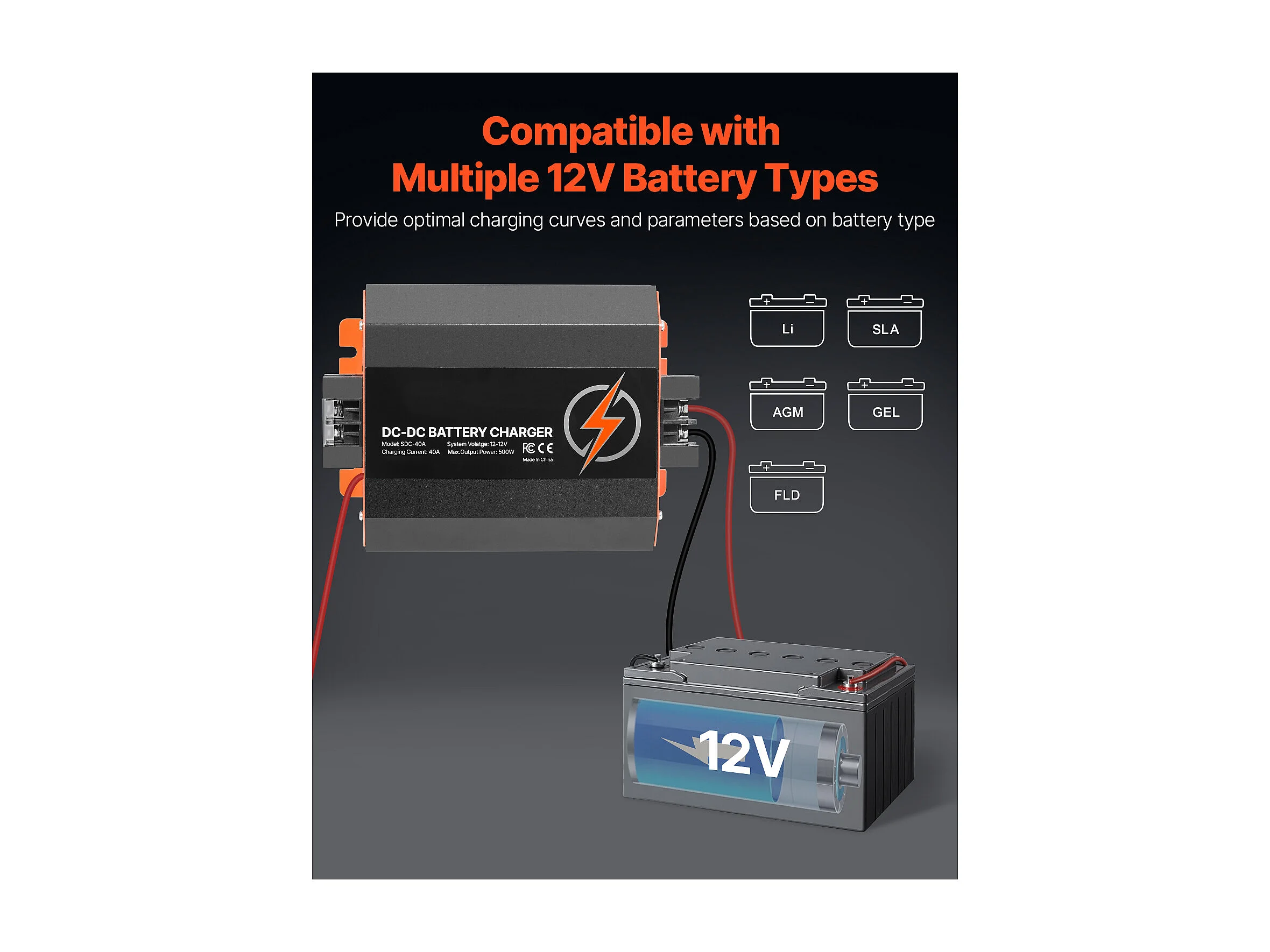 Chargeur de Batterie SucceBuy 12 V 40 A CC/CC, 500 W, Compatible Avec les Batteries Plomb-Acide, Lithium, AGM, GEL, Système de Charge Intelligent Multi-Étages