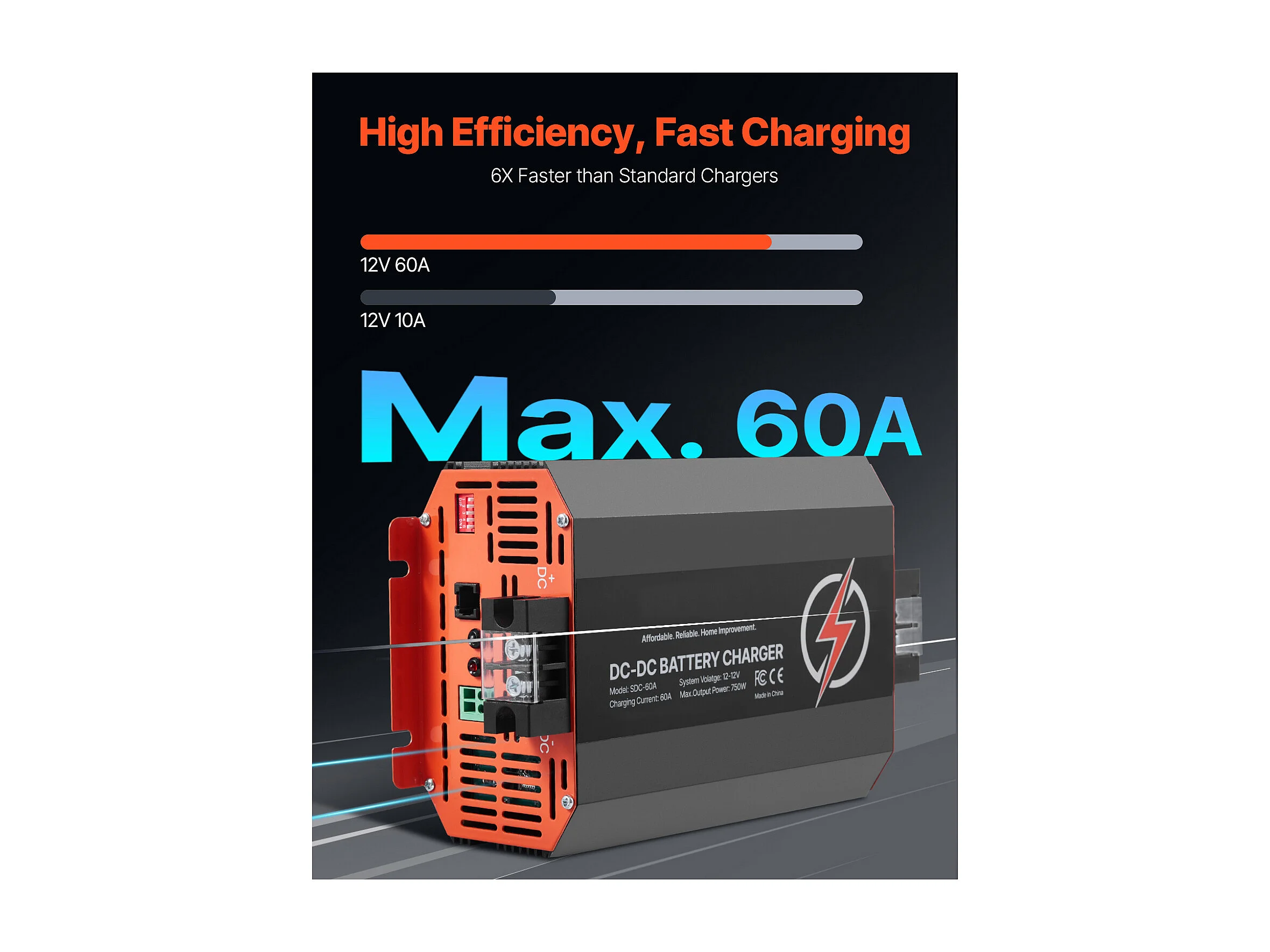 Chargeur de Batterie SucceBuy 12 V 60 A CC/CC, 750 W, Compatible Avec les Batteries Plomb-Acide, Lithium, AGM, GEL , Système de Charge Intelligent Multi-Étages