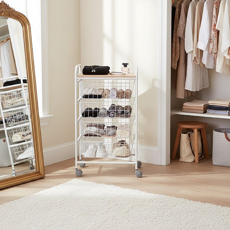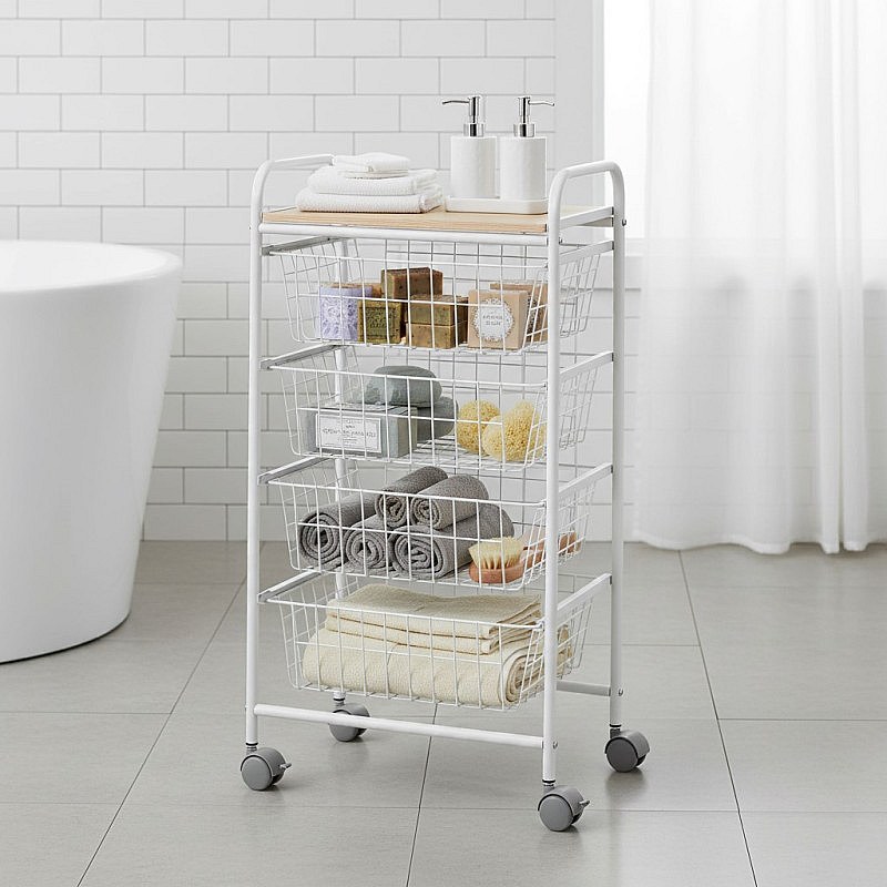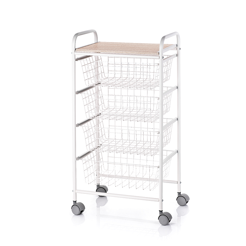 Chariot de cuisine, chariot de rangement - 4 paniers de grande capacité - Hêtre blanc - 86*44*30 cm - FIESTA