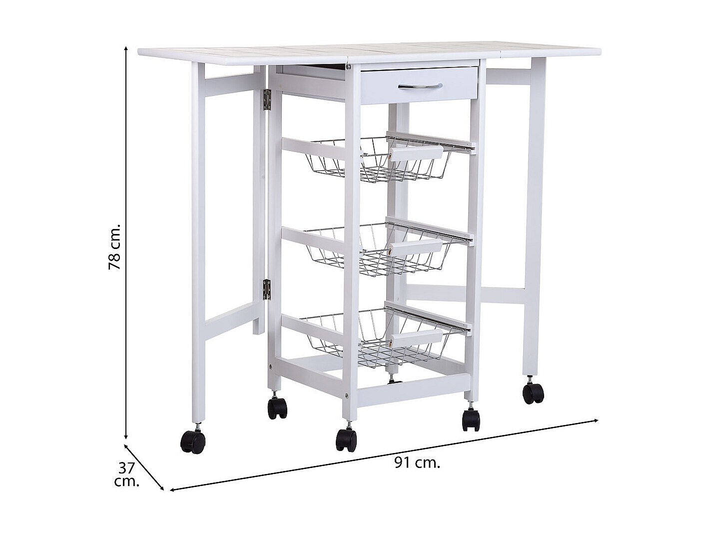 Chariot de cuisine en bois blanc 37/91x37x79h