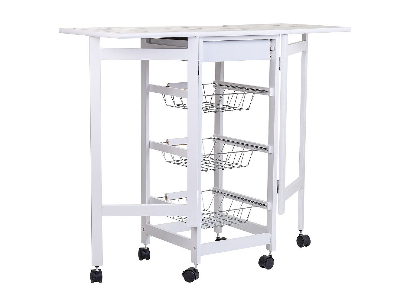 Desserte de cuisine 129x46x91.5cm, chariot de salle à manger, plan de travail pliable, armoire de rangement, blanc