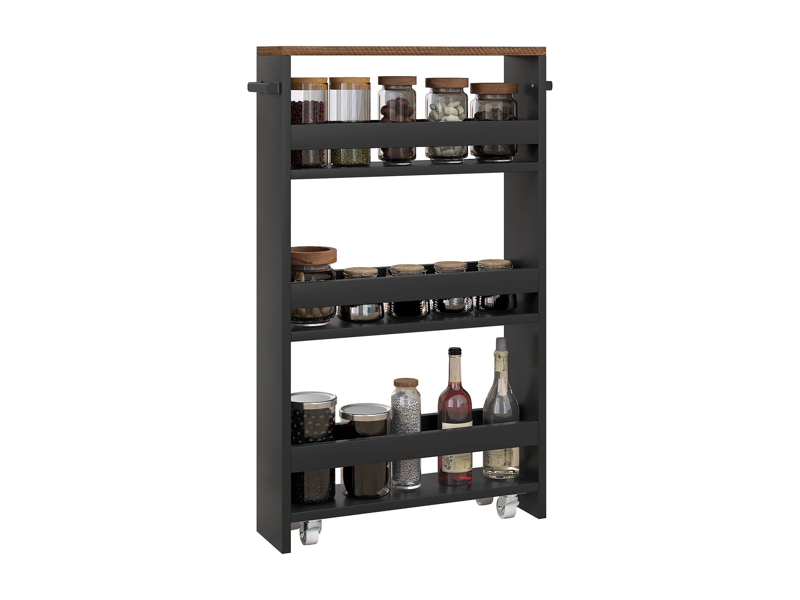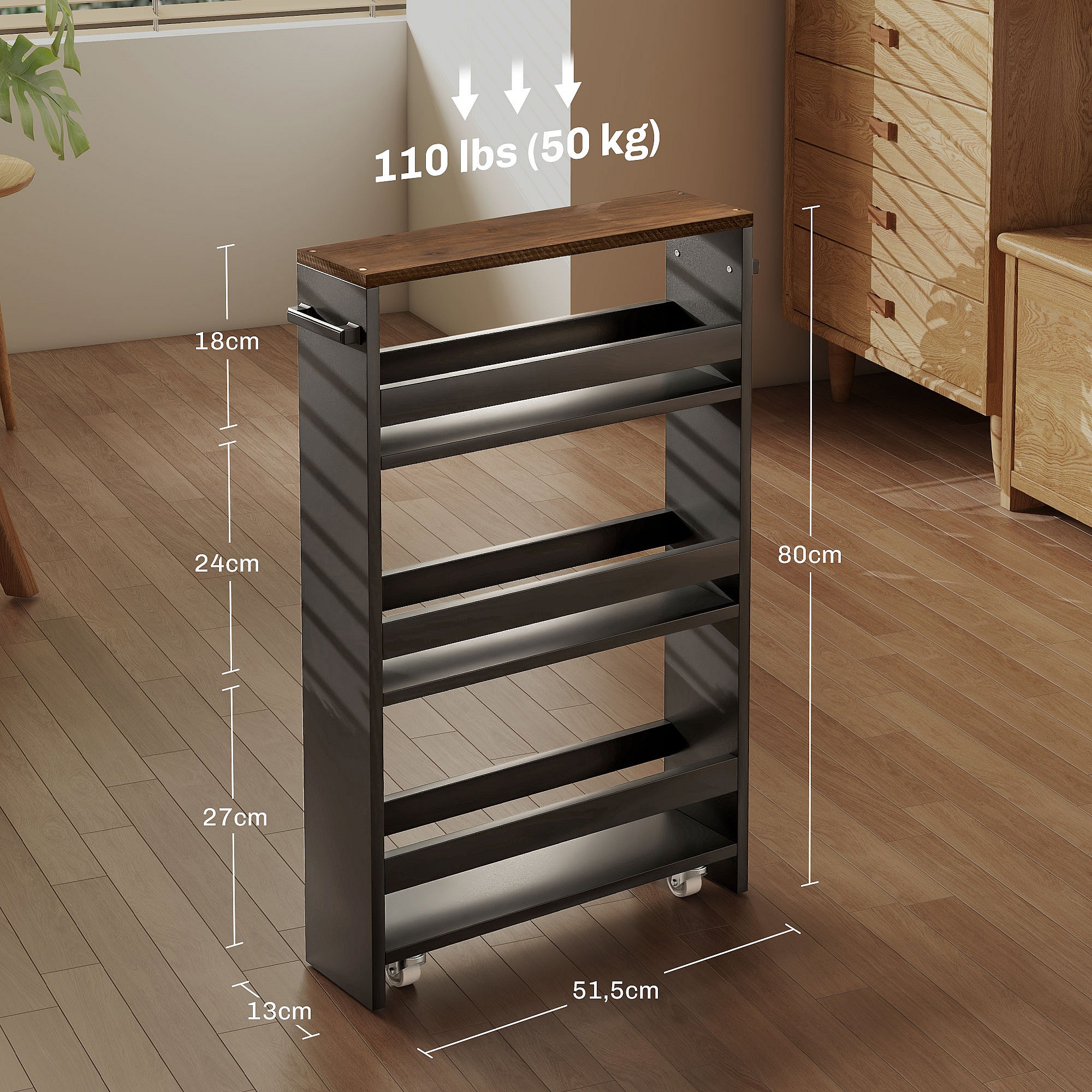 Chariot de rangement desserte à roulettes avec 3 niveaux de rangement et poignée, dim. 51,5l x 13P x 80H cm, noir