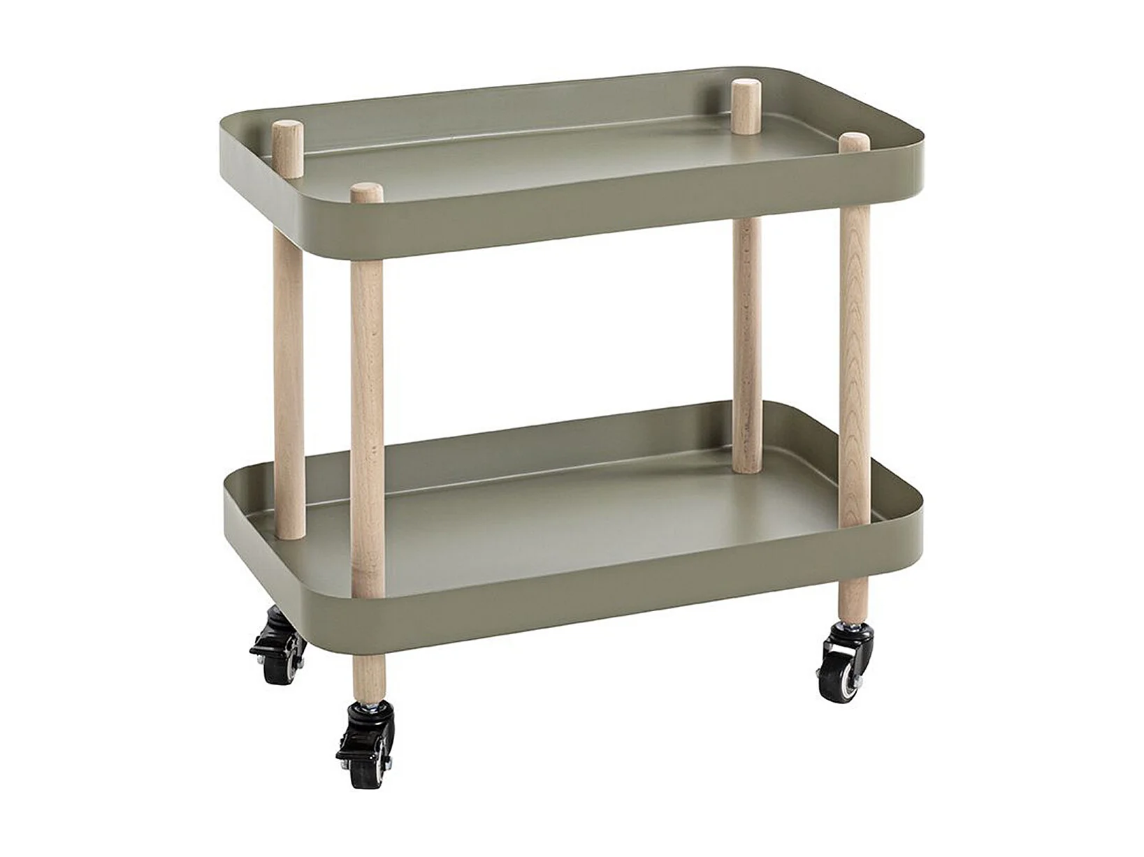 Chariot de service, desserte en bois coloris naturel et métal vert -longueur 50 x profondeur 30 x hauteur 76 cm