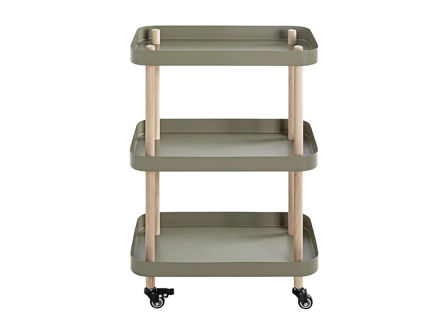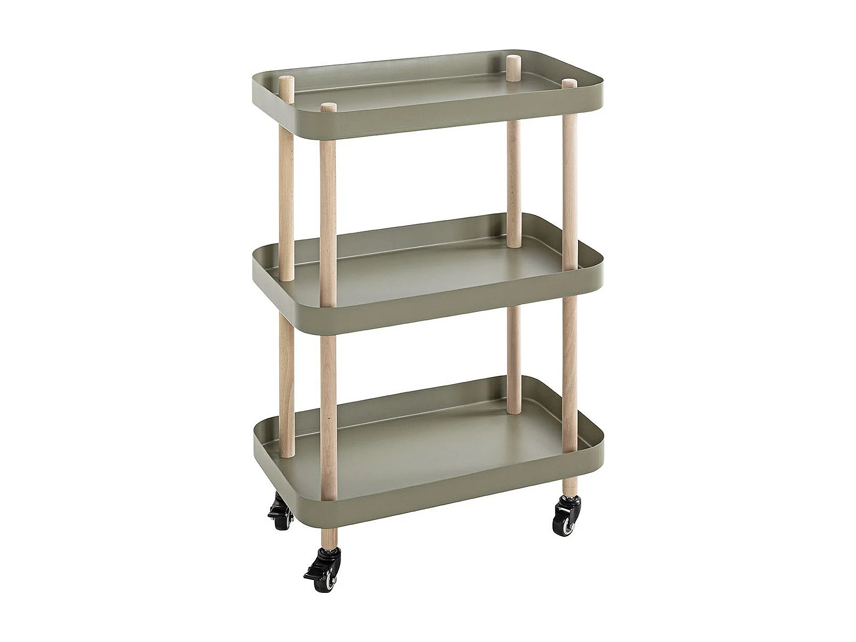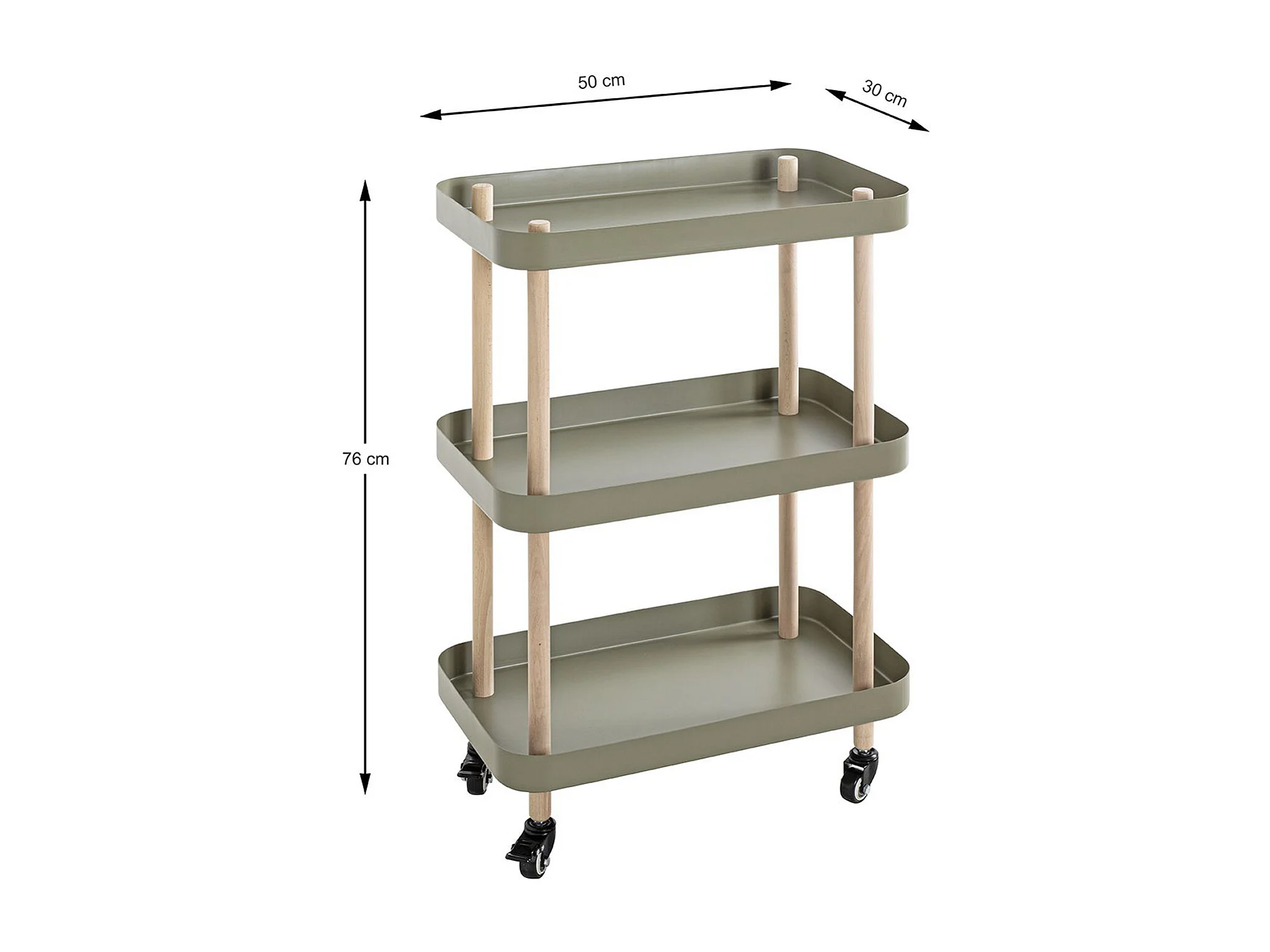 Chariot de service, desserte en bois coloris naturel et métal vert -longueur 50 x profondeur 30 x hauteur 76 cm