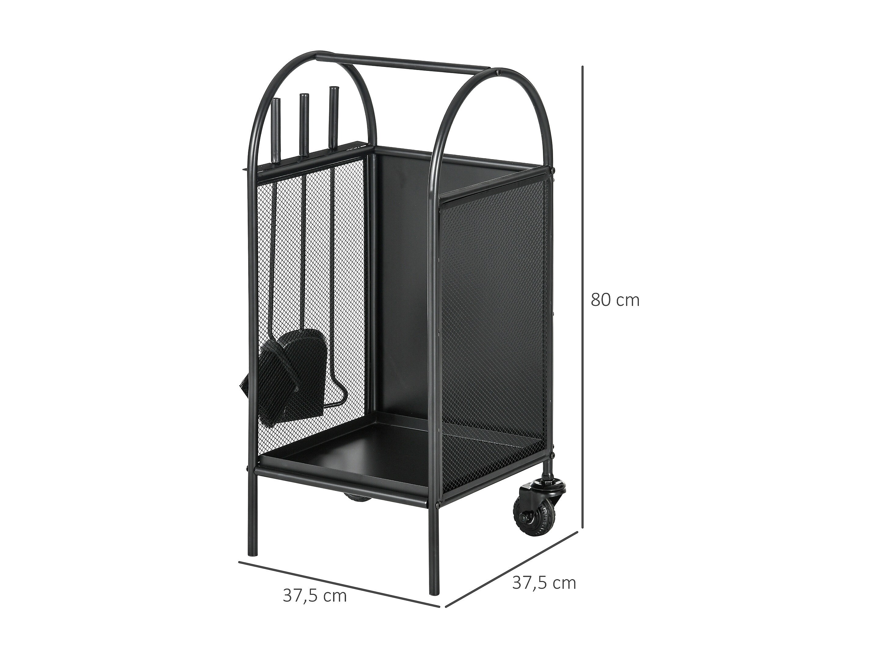 Serviteur de cheminée - porte bûches - range bûches multi accessoires dim. 45L x 40l x 78H cm métal noir