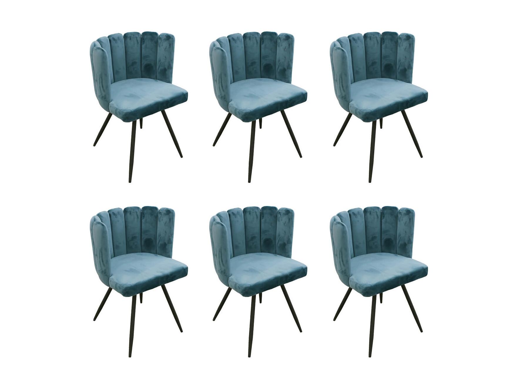 CHARLOTTE - Lot de 6 Chaises Velours Bleu