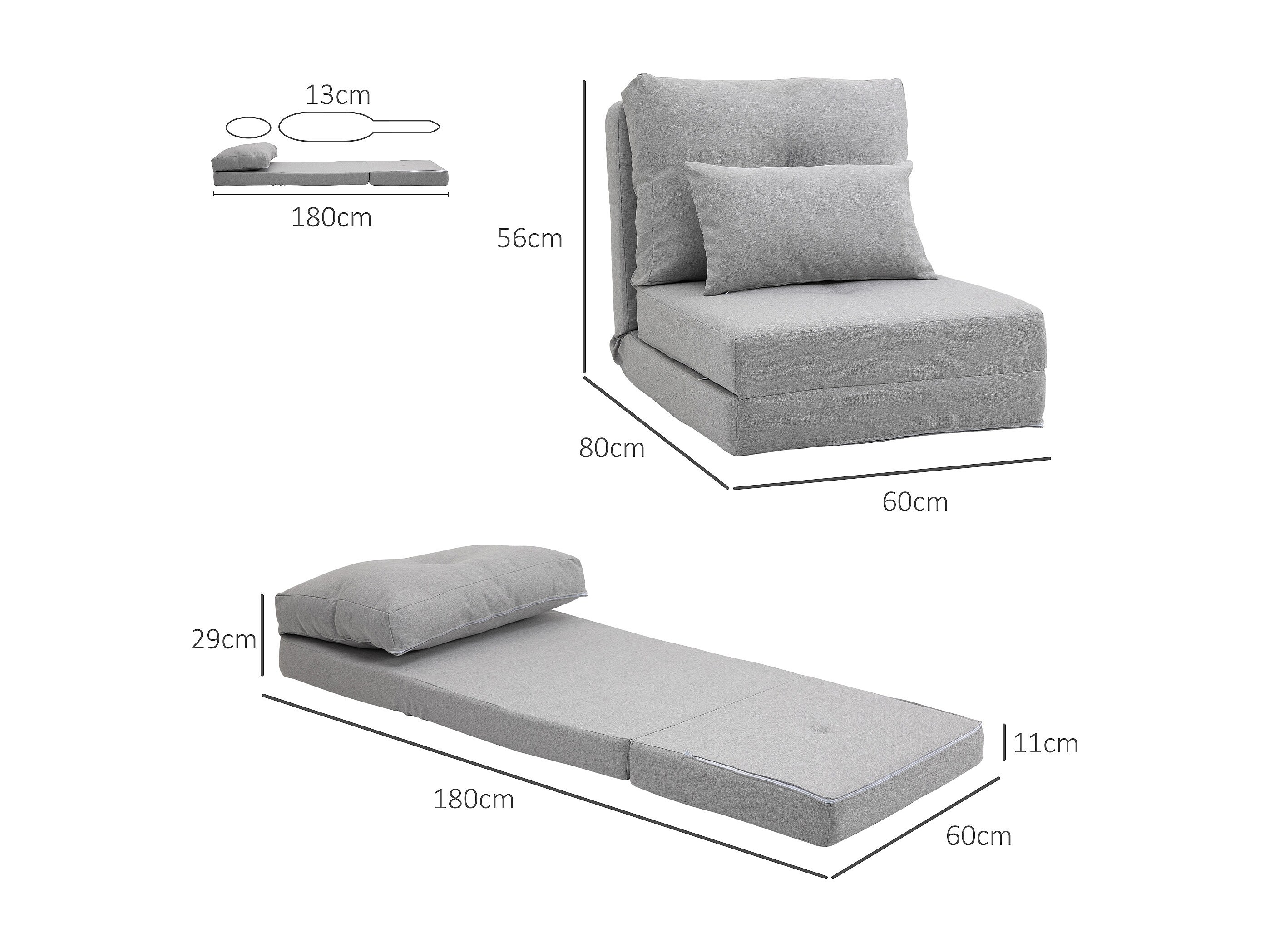 Fauteuil convertible 3 en 1 chauffeuse lit avec coussin gris