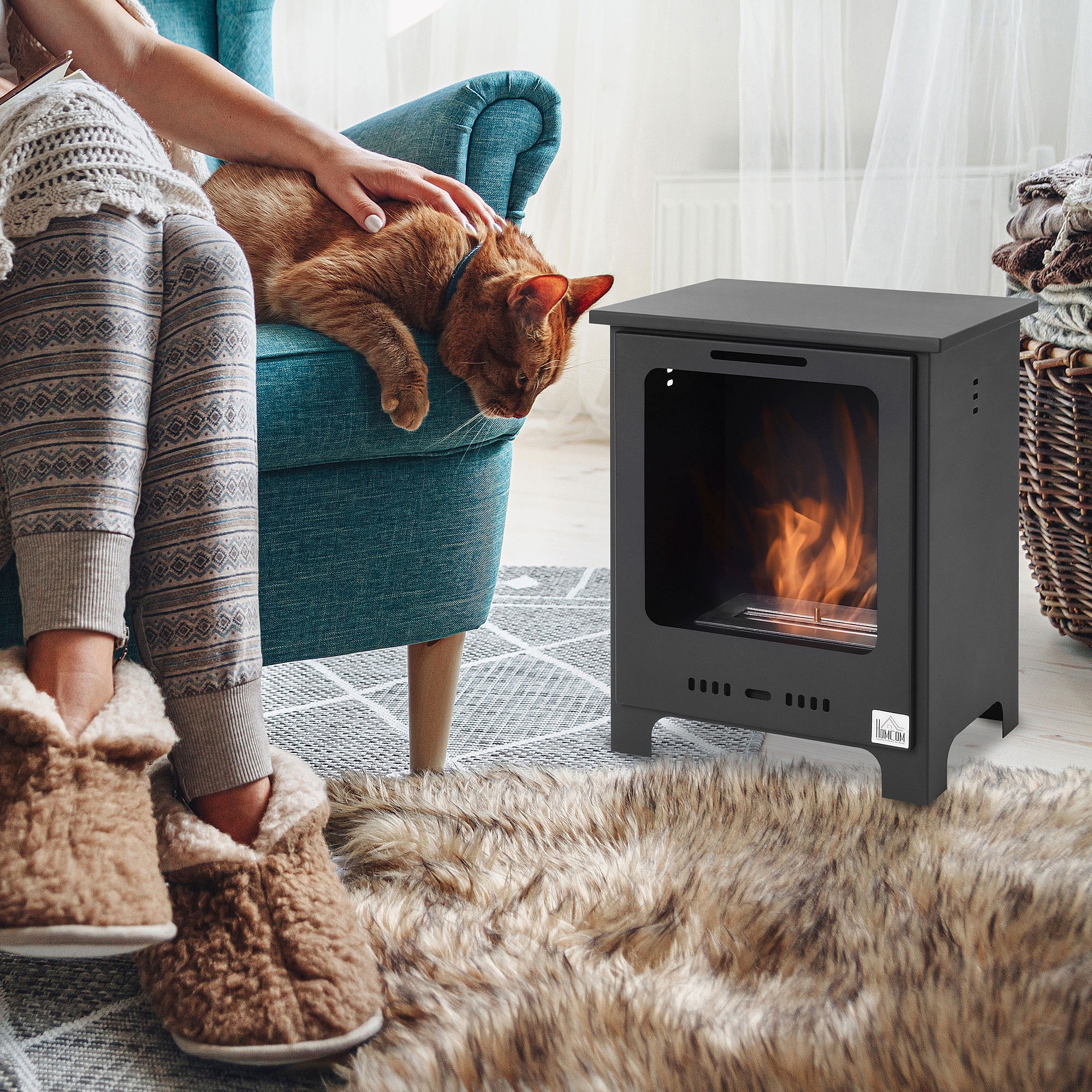 Cheminée bioéthanol sur pieds style néo-rétro poêle 1 brûleur 1,5 L dim. 40L x 30l x 50H cm couverture 20-25 m² noir
