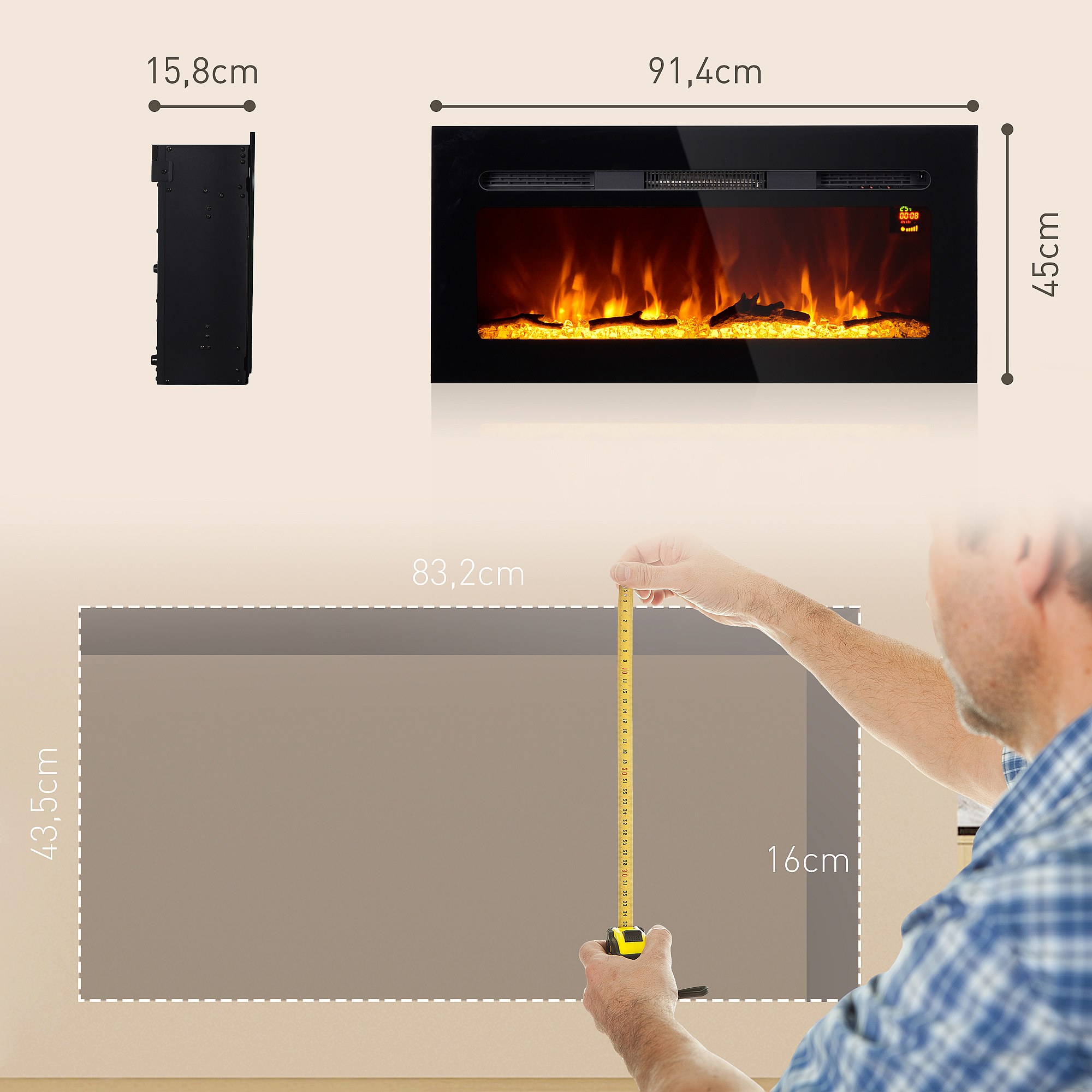 Cheminée électrique 1800W effets flammes LED 3D réglables - timer, thermostat, télécommande - noir
