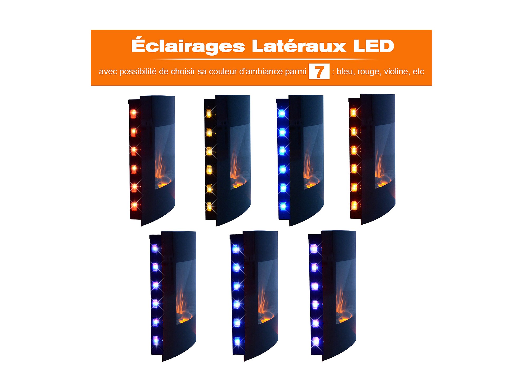 Cheminée électrique murale éclairages latéraux LED design avant-gardiste affichage LED avec télécommande et minuterie 900/1800 W luminosité réglable noir
