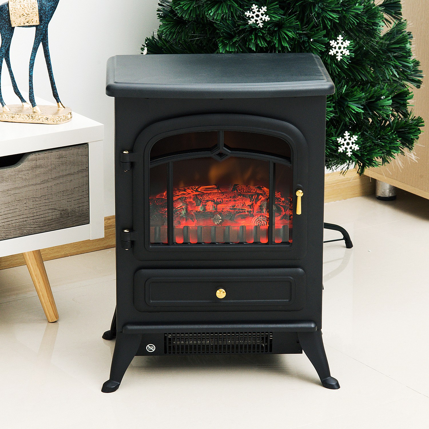 Cheminée électrique poêle style rétro thermostat 1000-2000 W noir