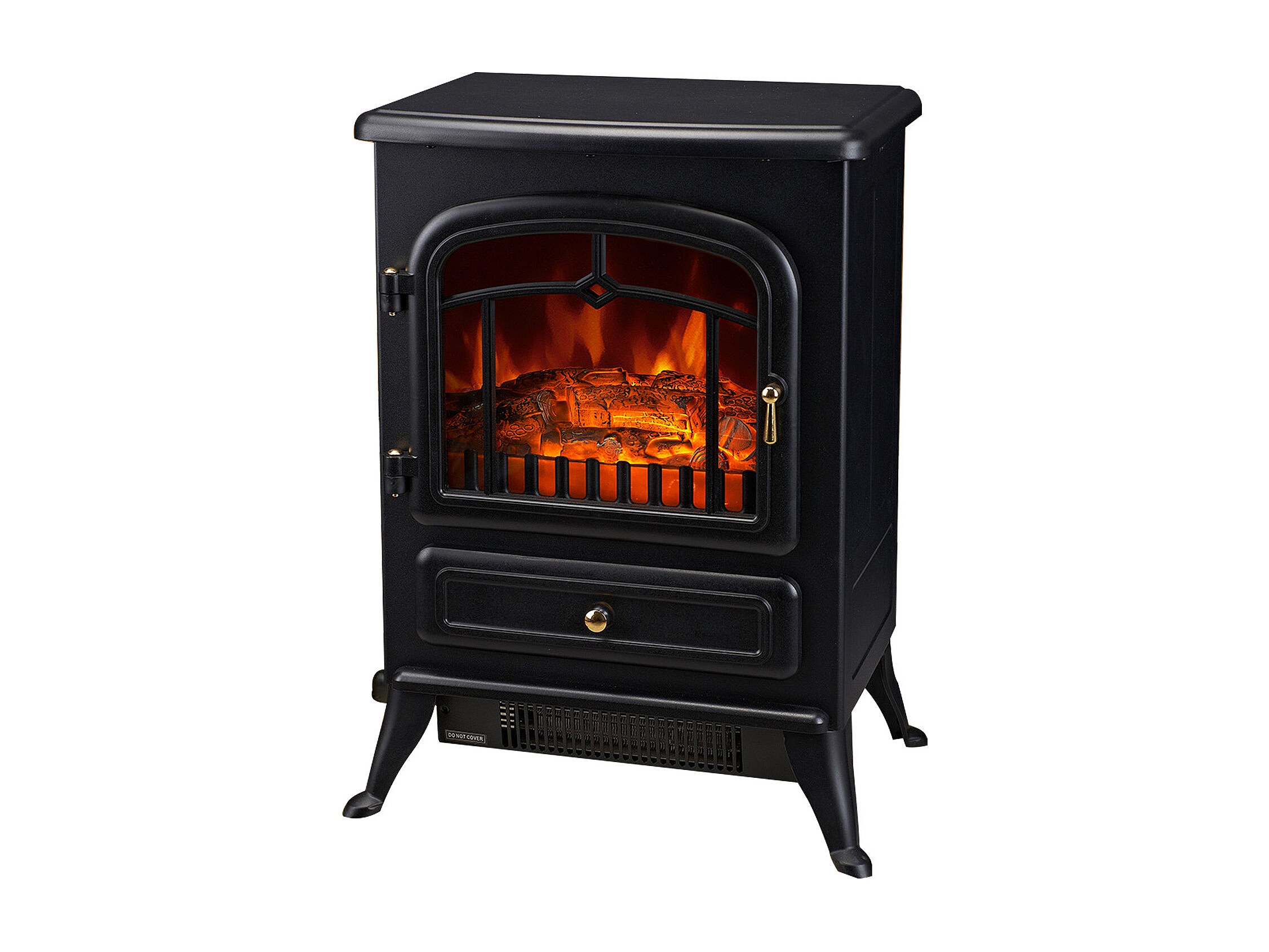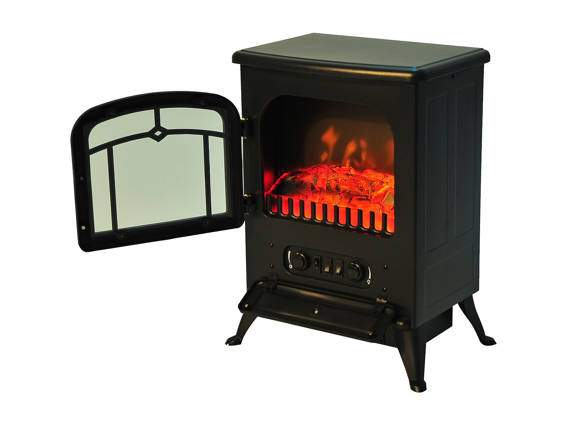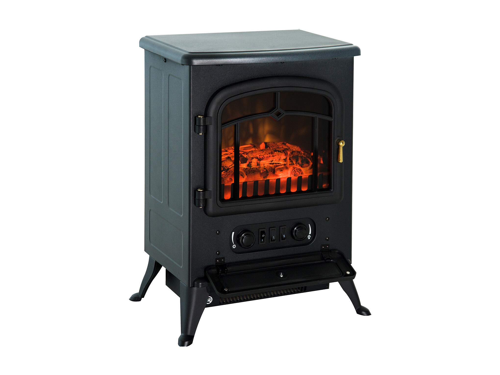Cheminée électrique poêle style rétro 1000-2000 W simulation flammes LED porte noir