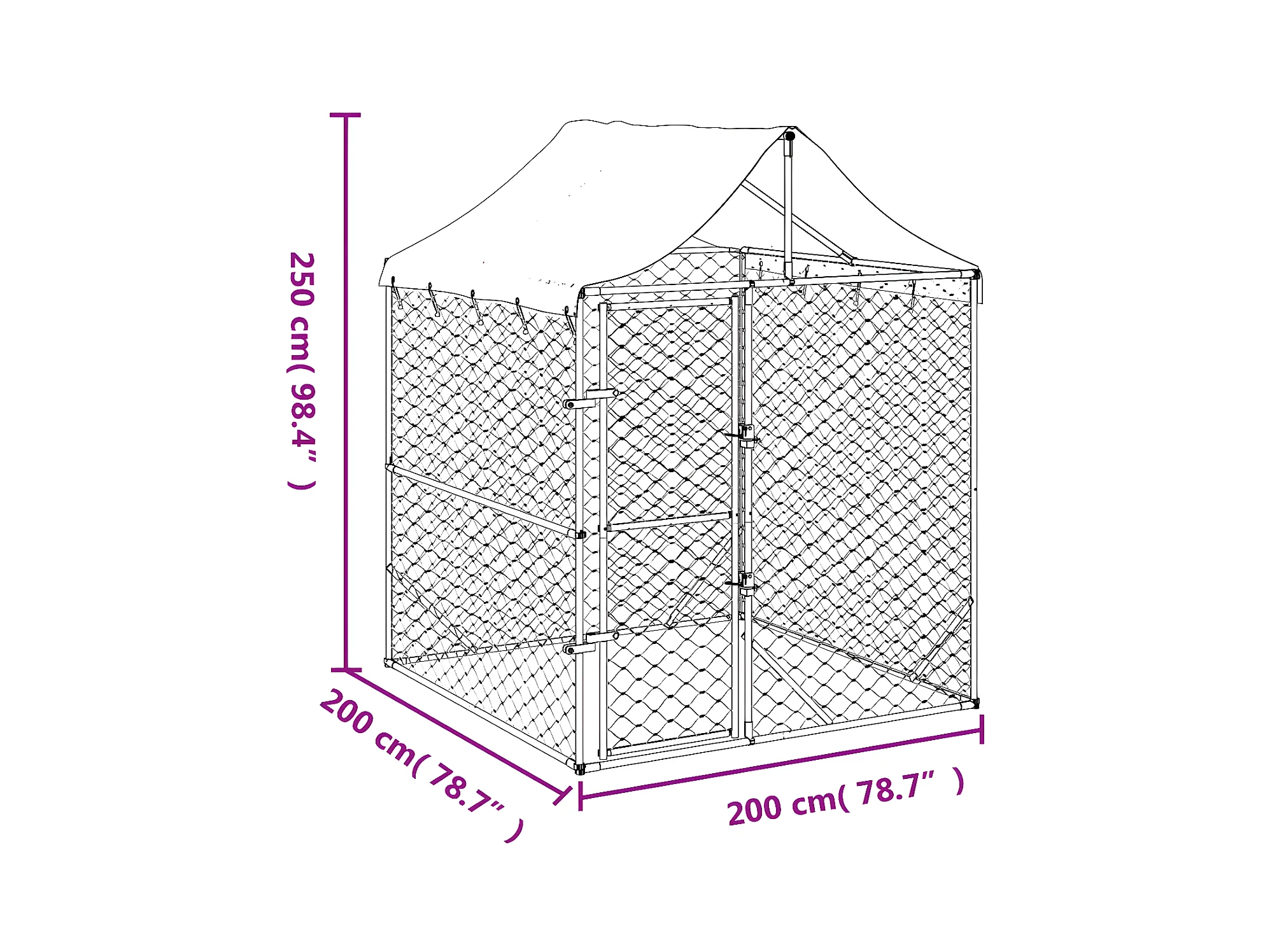 Chenil d'extérieur pour chiens avec toit argenté 2x2x2,5 m RG3Q75031