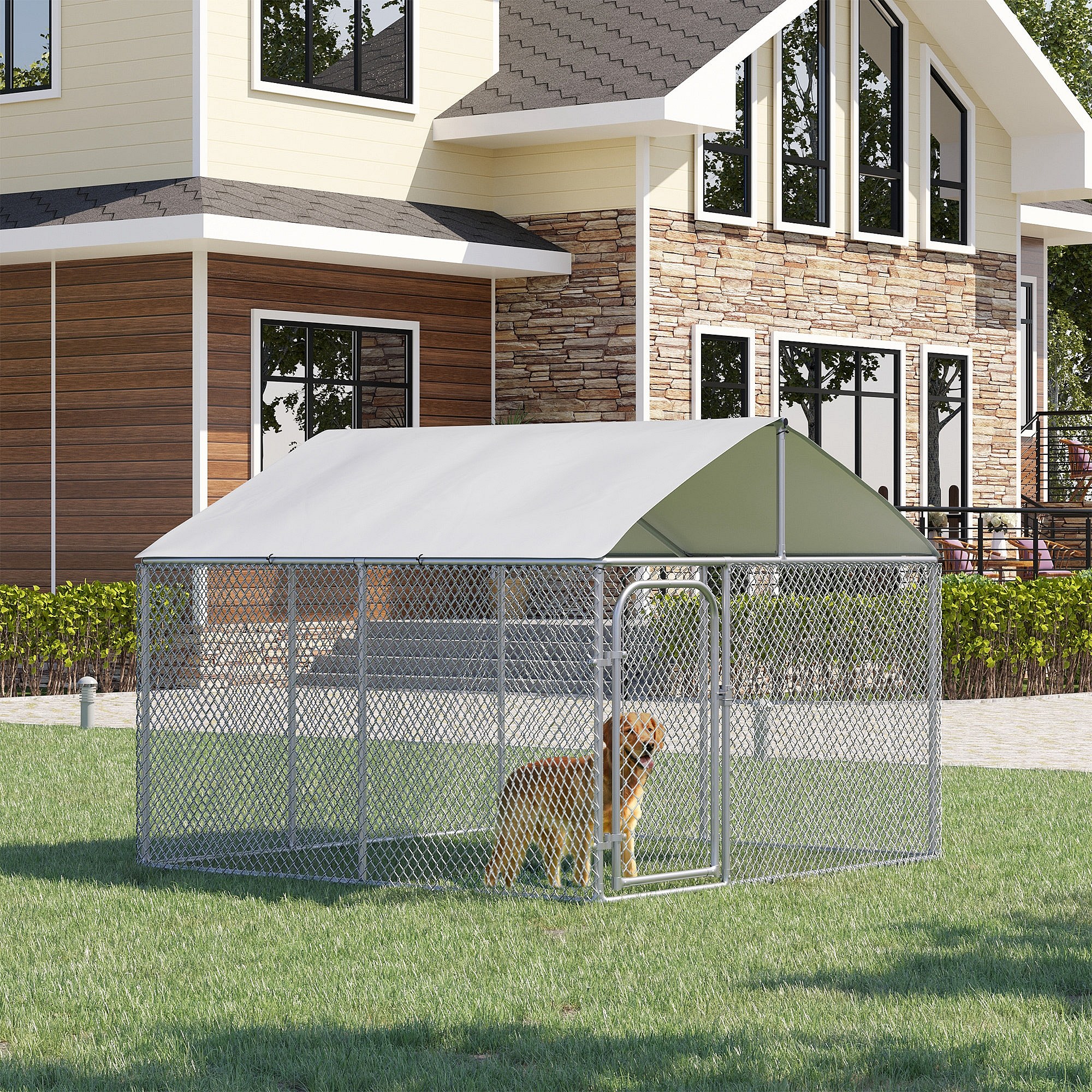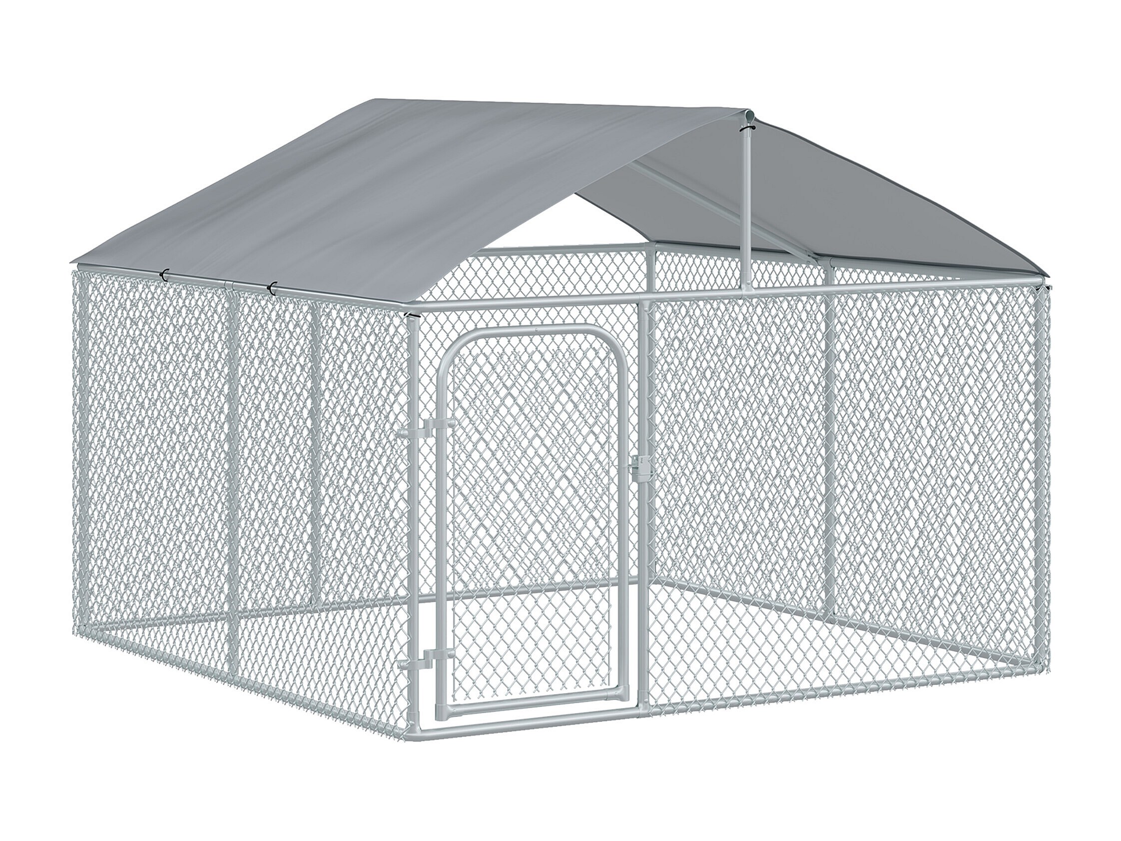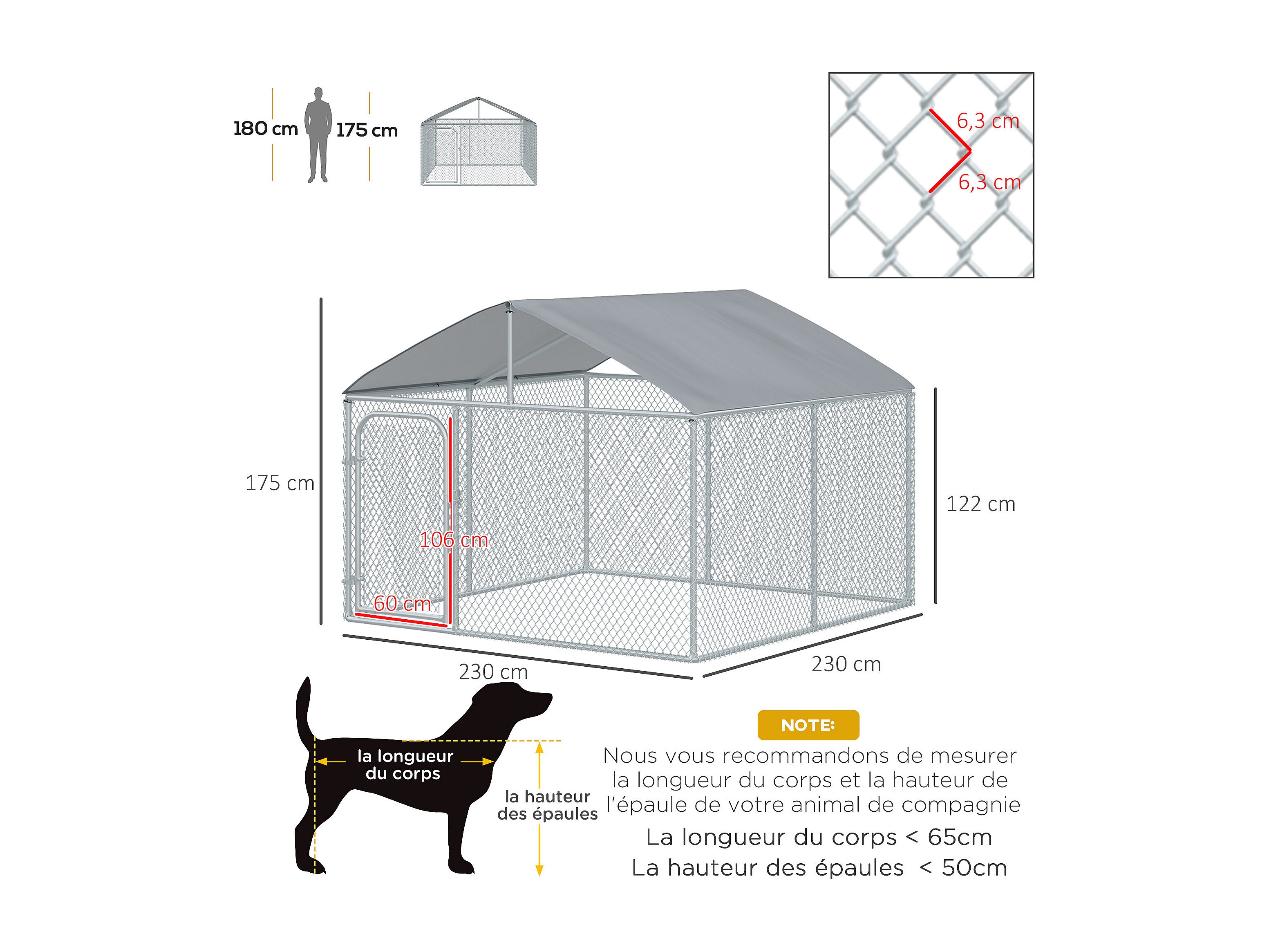 Chenil extérieur avec toit pour chien 5 m² - parc grillagé 230 x 230 x 175 cm - espace couvert - acier galvanisé