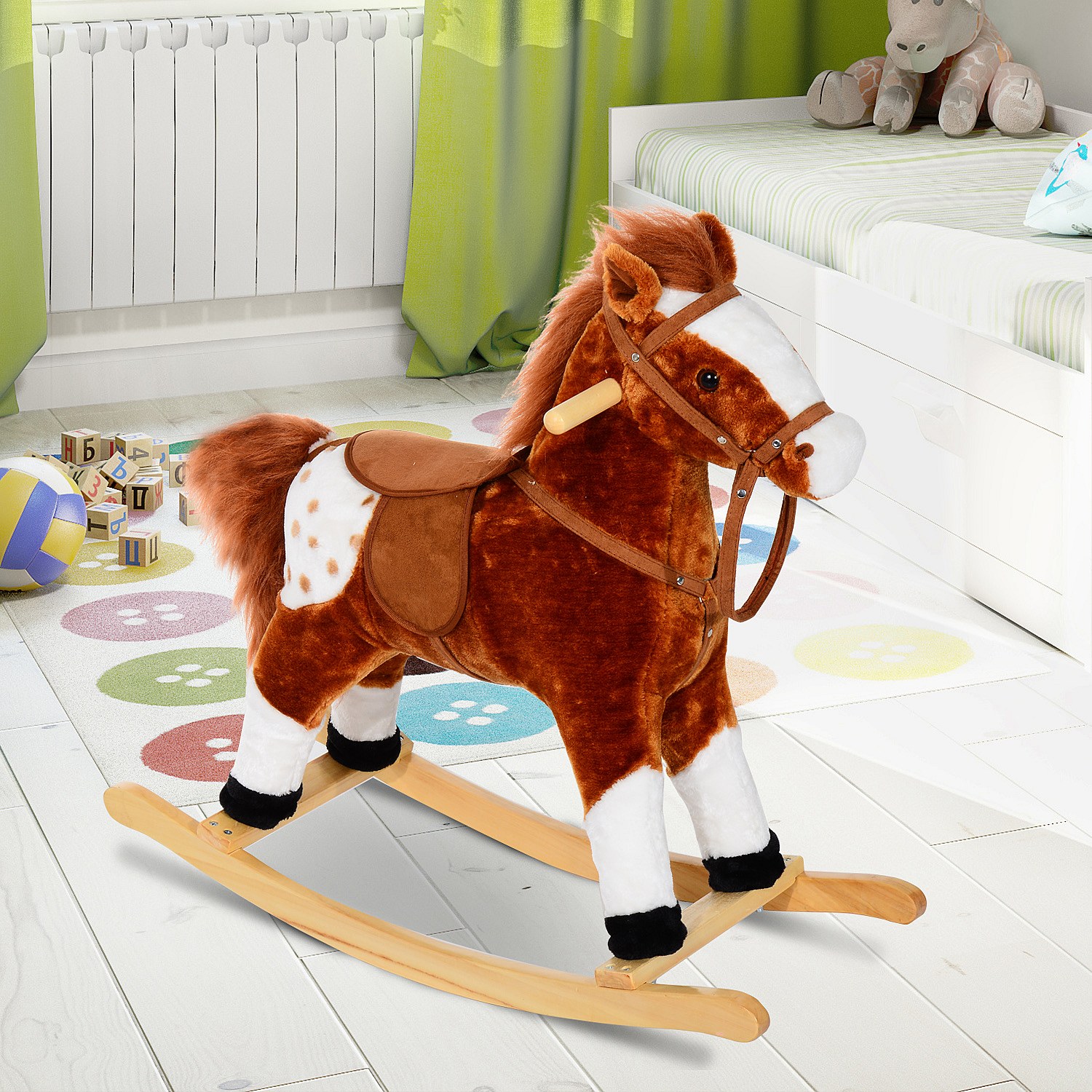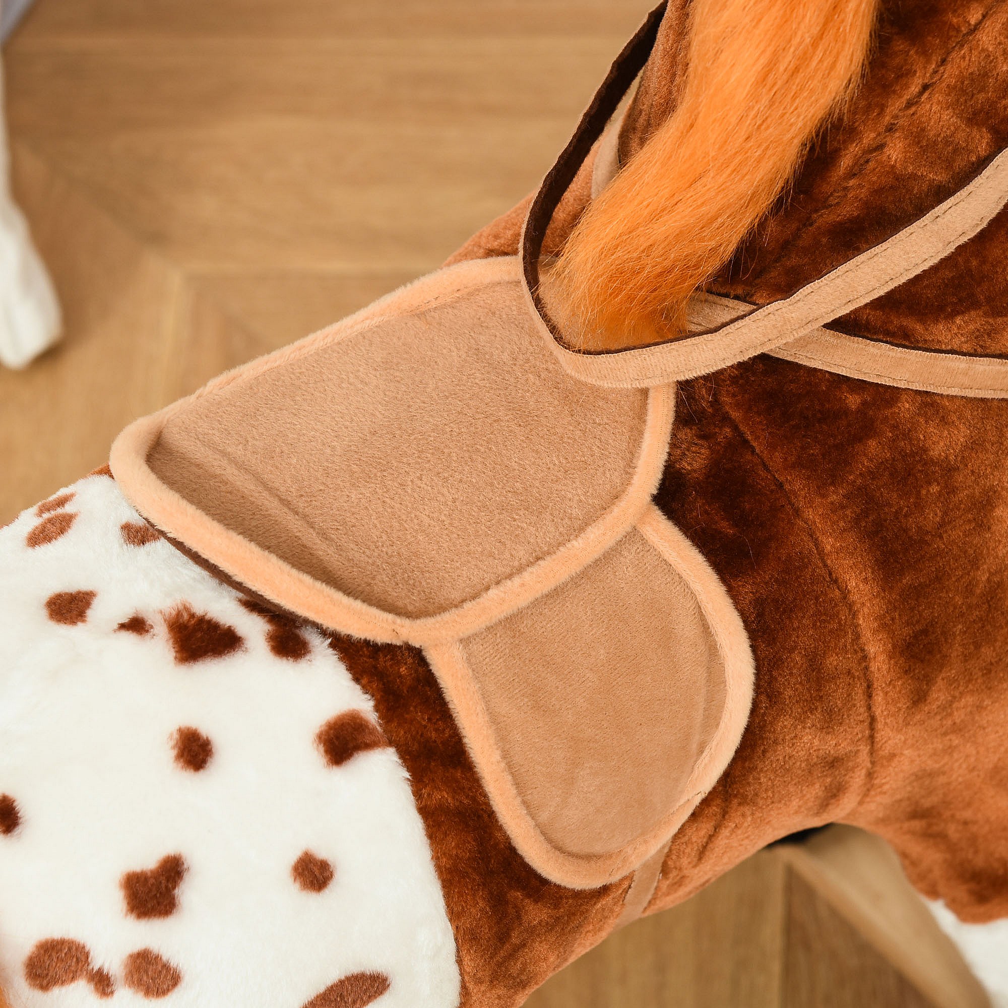 Cheval à bascule cheval de cowboy effet sonore selle rênes marron blanc