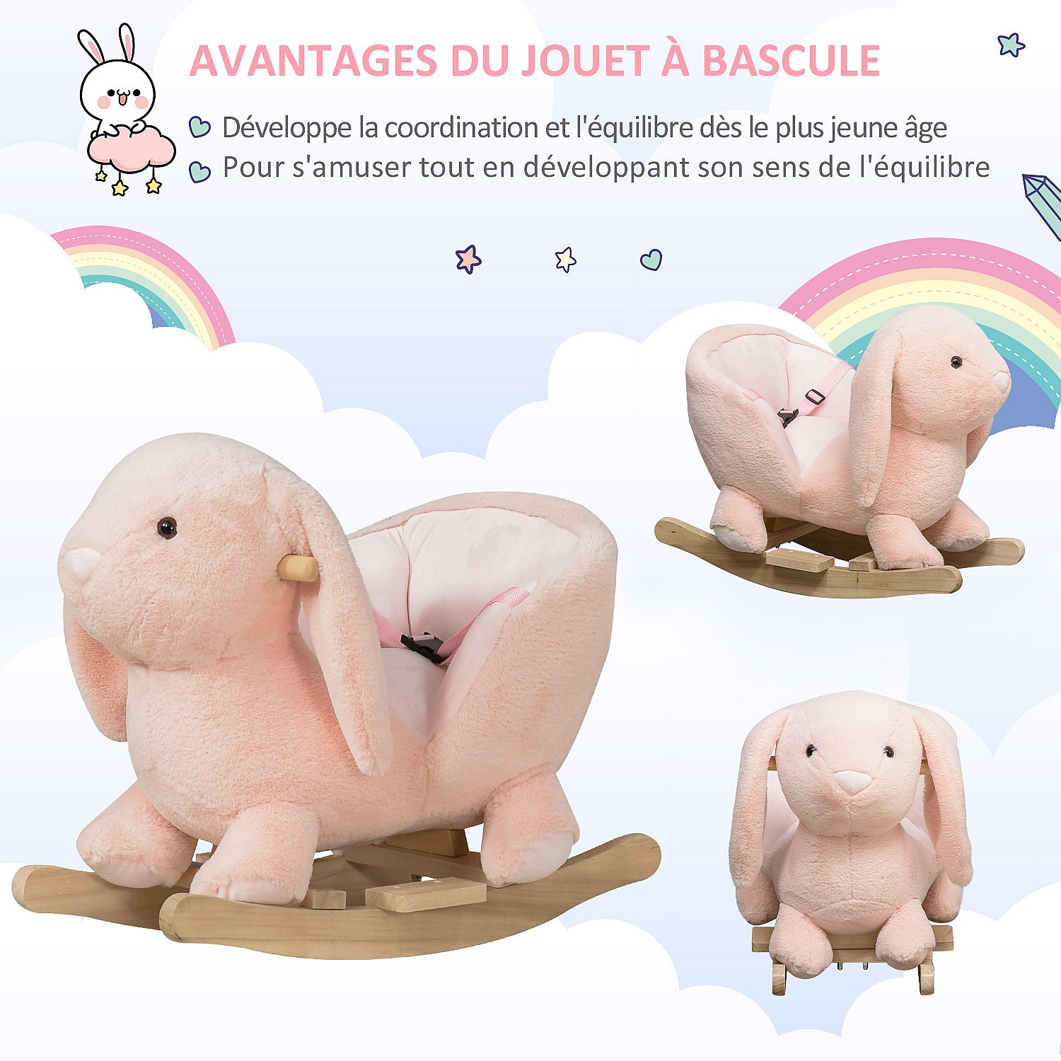 Cheval à bascule jouet à bascule lapin fauteuil intégré ceinture de sécurité fonction sonore clapissement rose