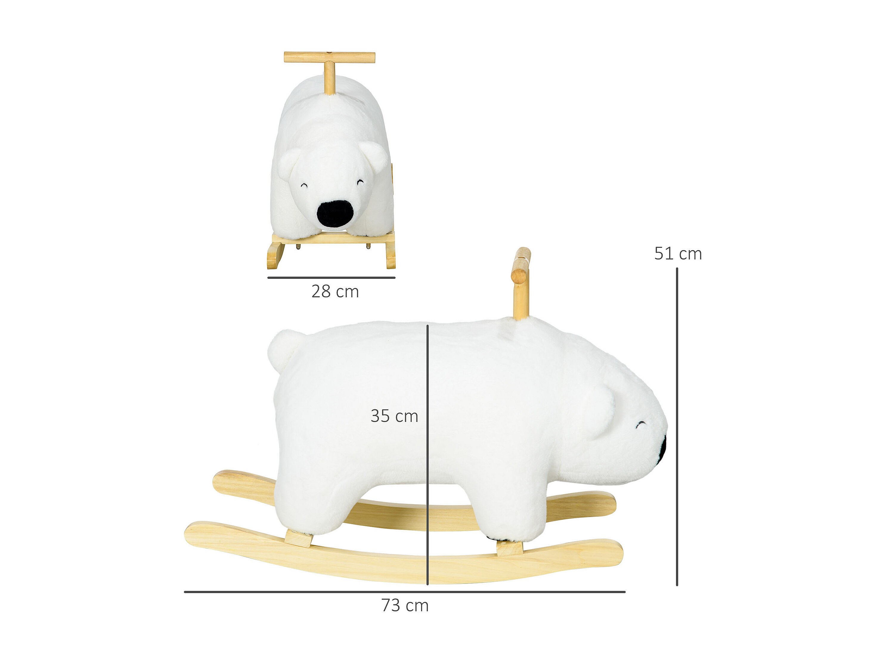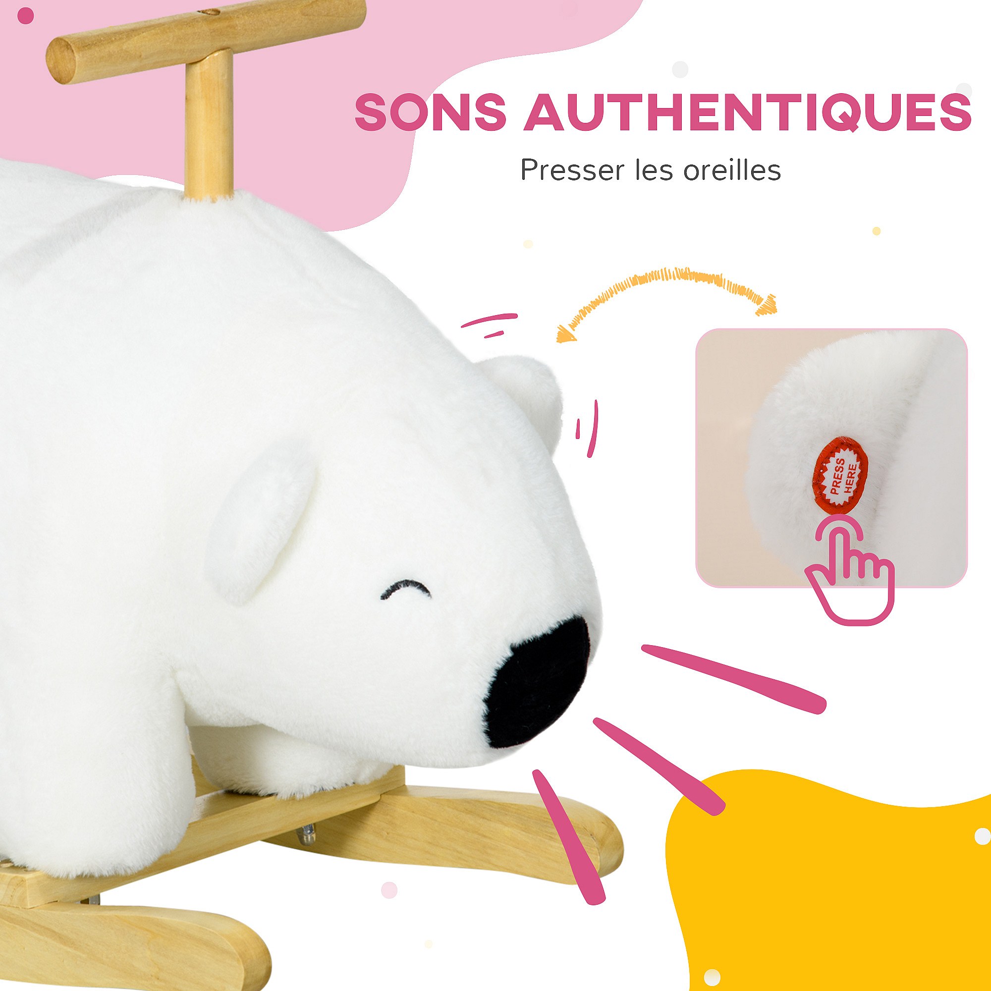 Cheval à bascule jouet à bascule modèle ours polaire fonction sonore poignée bois peuplier peluche douce blanc