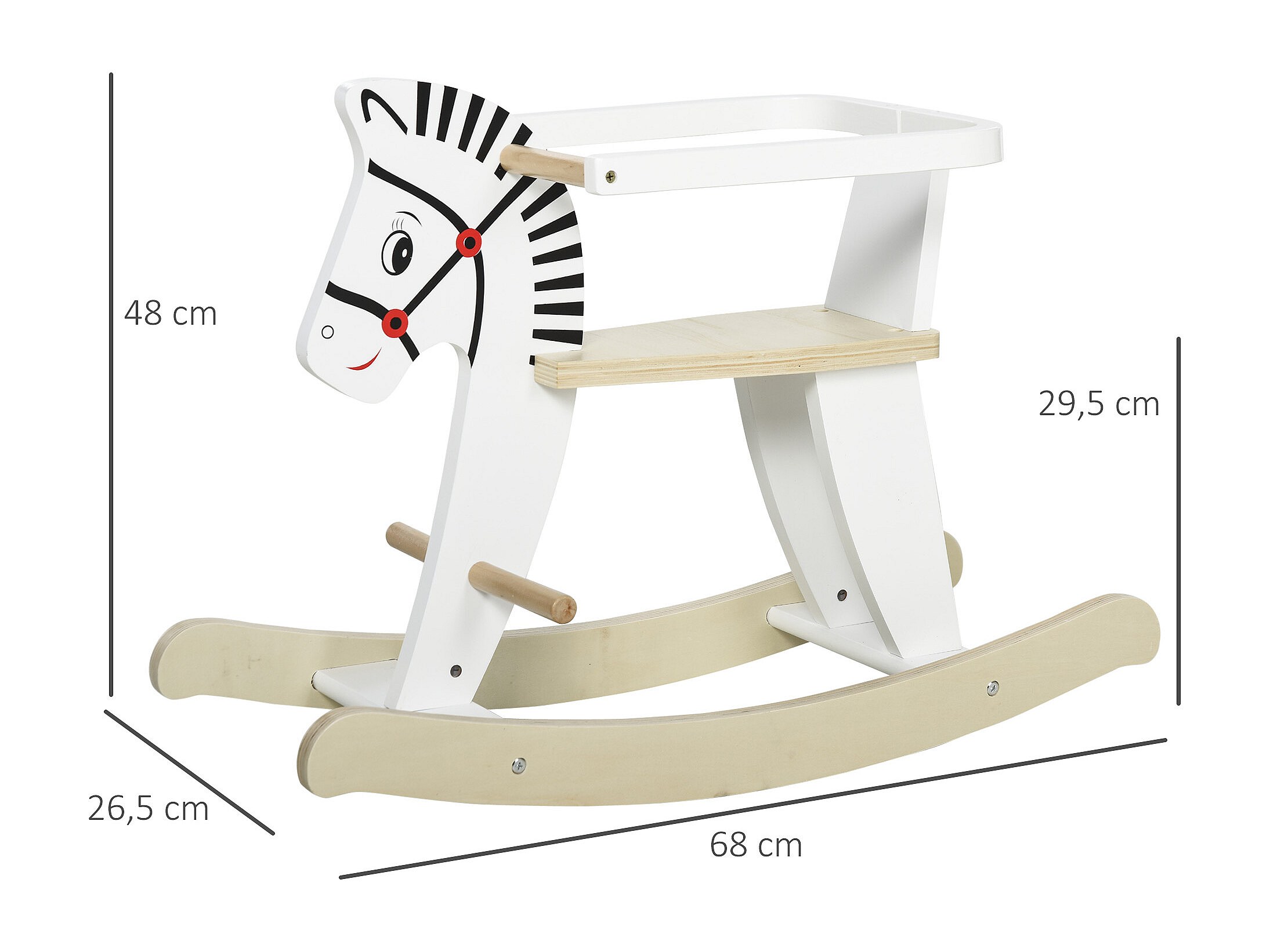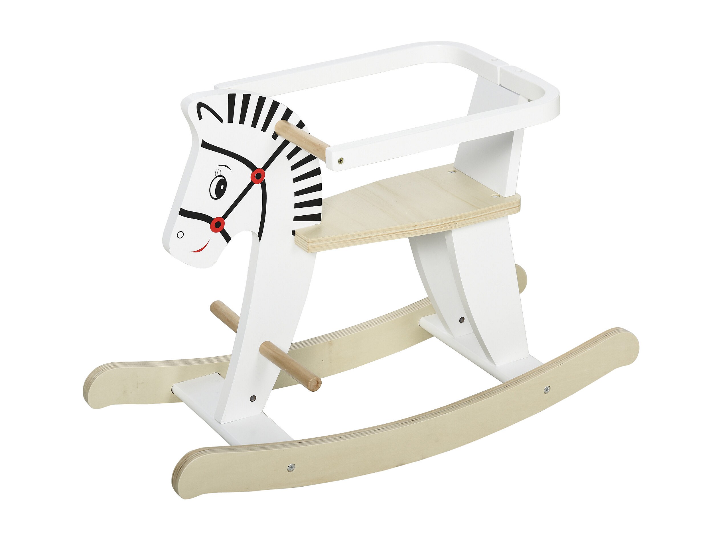 Cheval à bascule zèbre - cheval à bascule en bois - jeu à bascule bois - poignées repose-pied anneau de sécurité