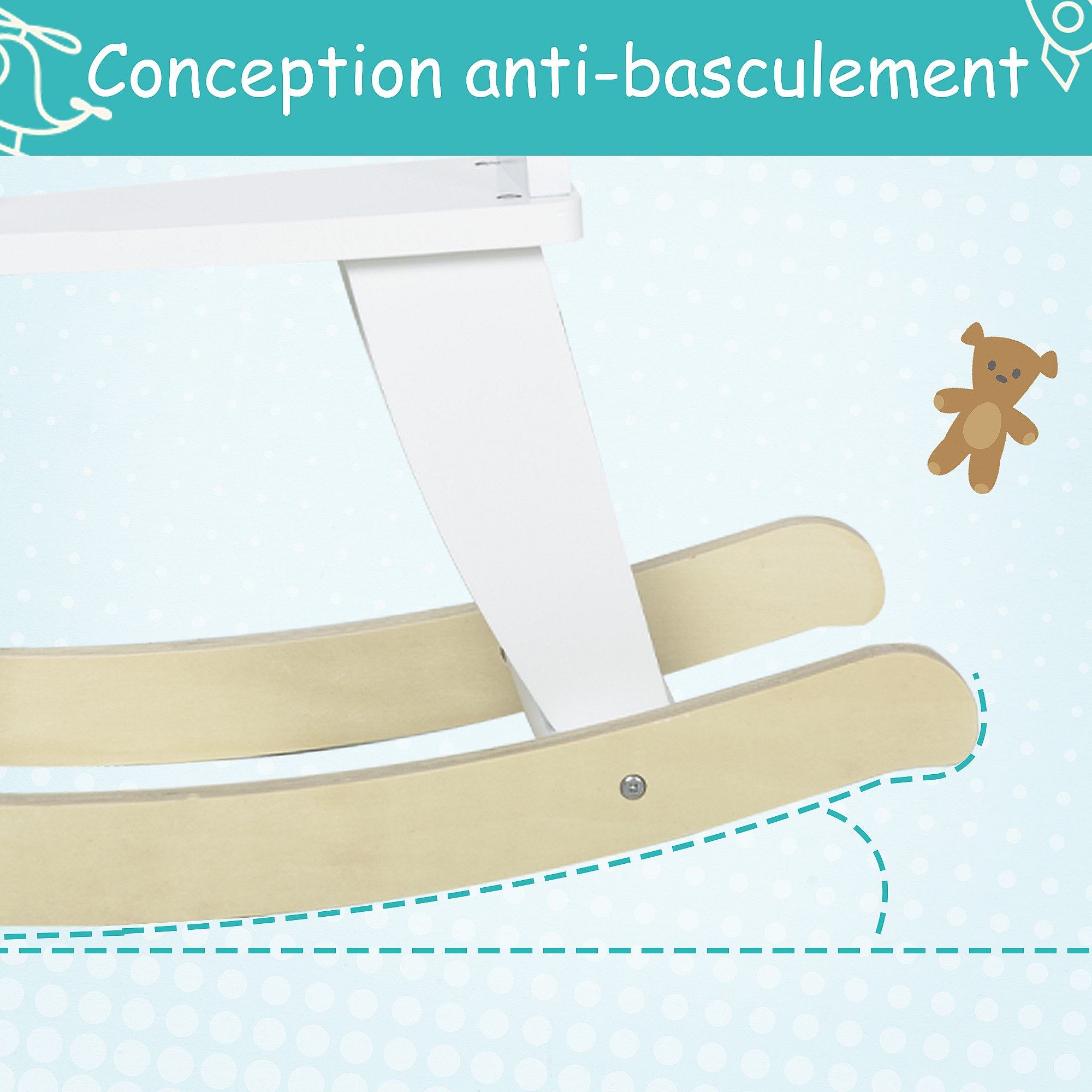 Cheval à bascule en bois - jeu à bascule bois - poignées repose-pied butées - MDF contreplaqué blanc bois naturel