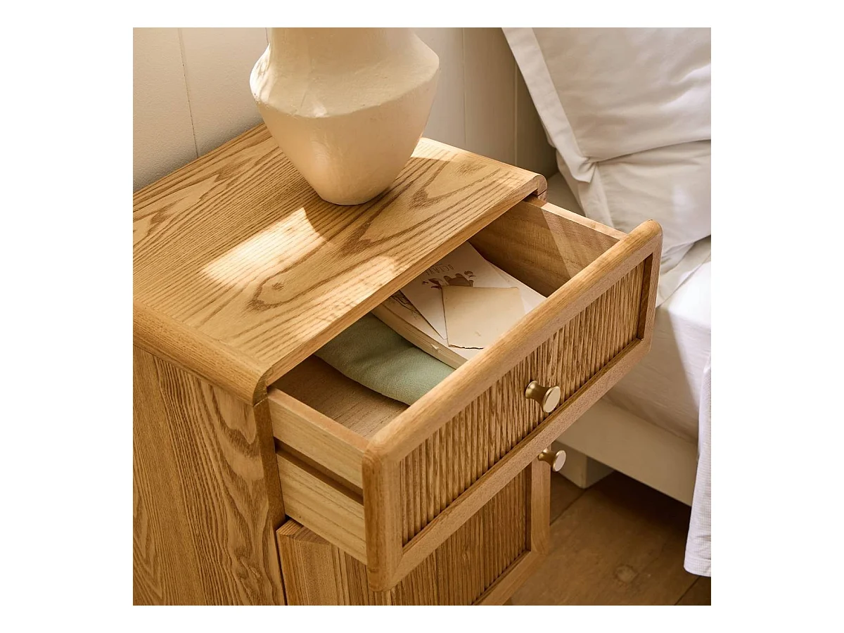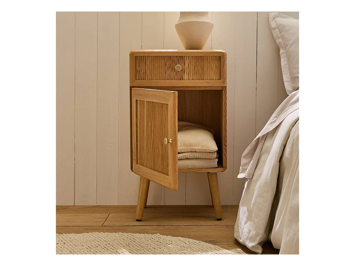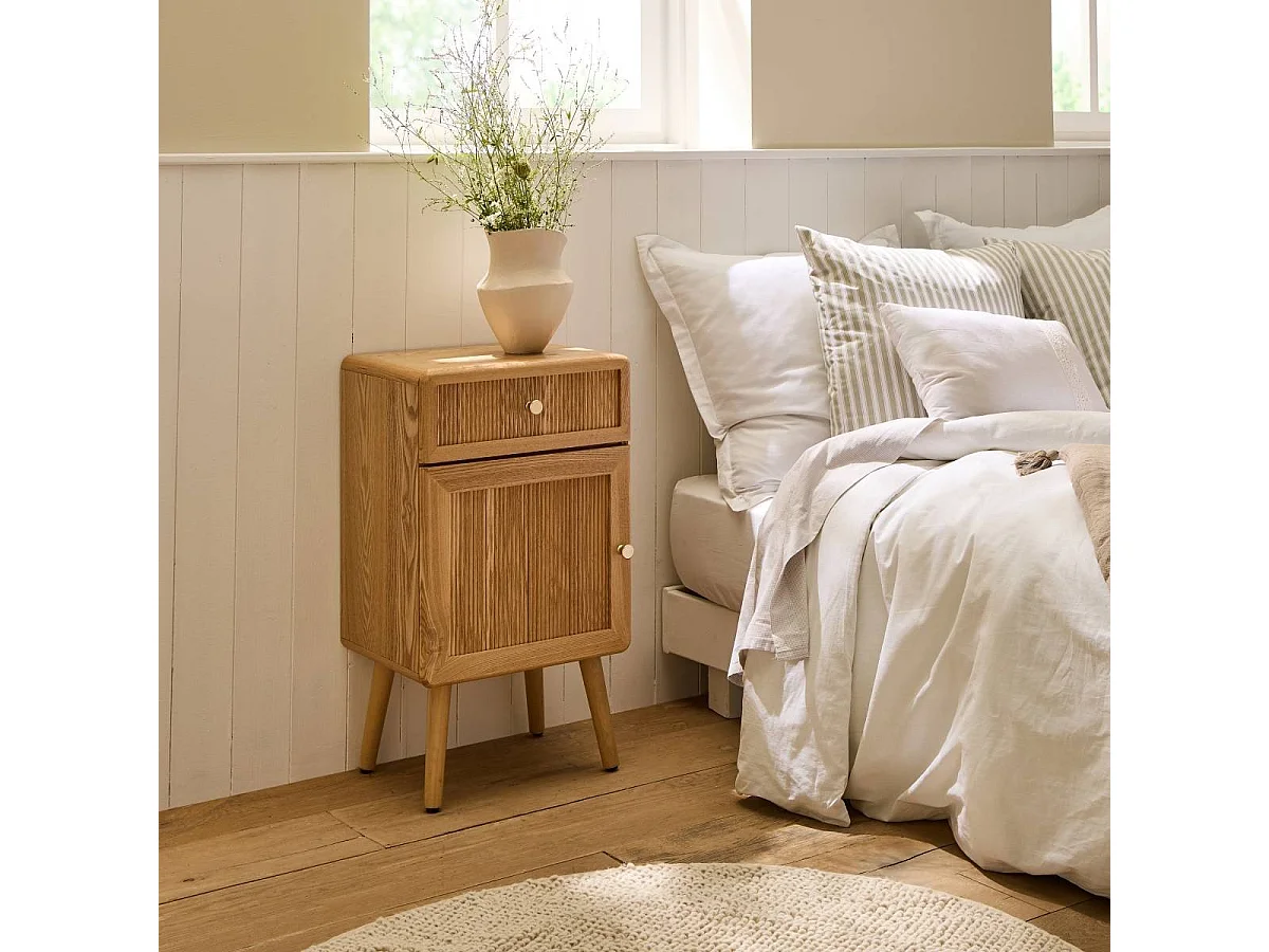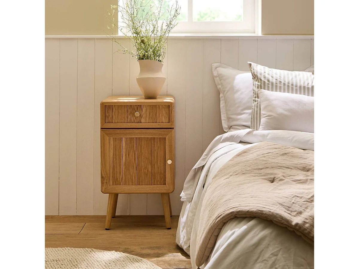 Chevet 1 porte et 1 tiroir avec façades lamellées H71 cm - AVA