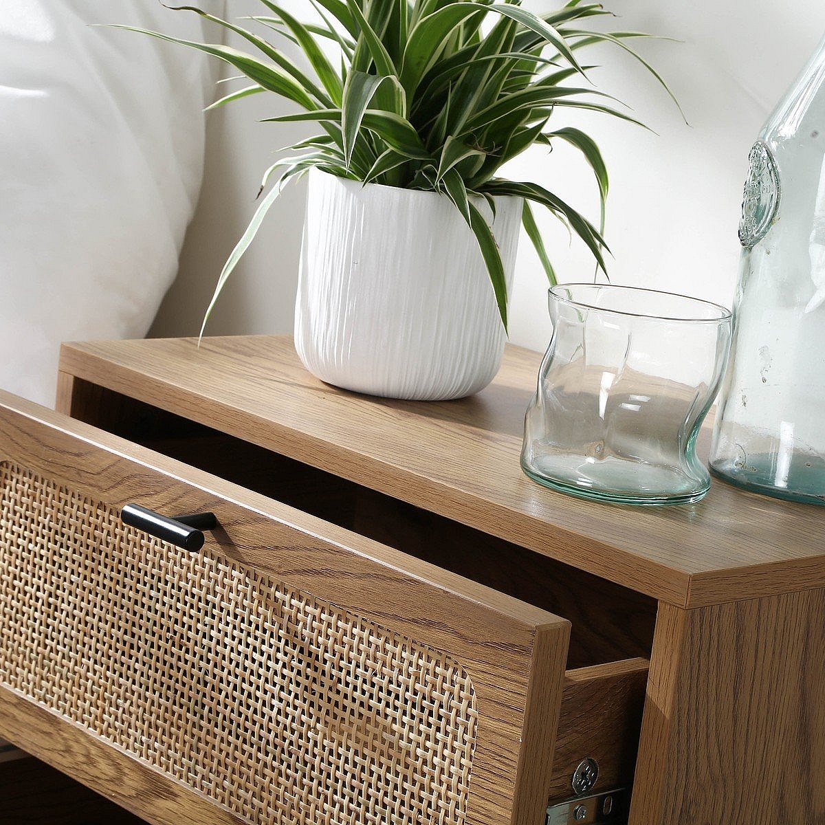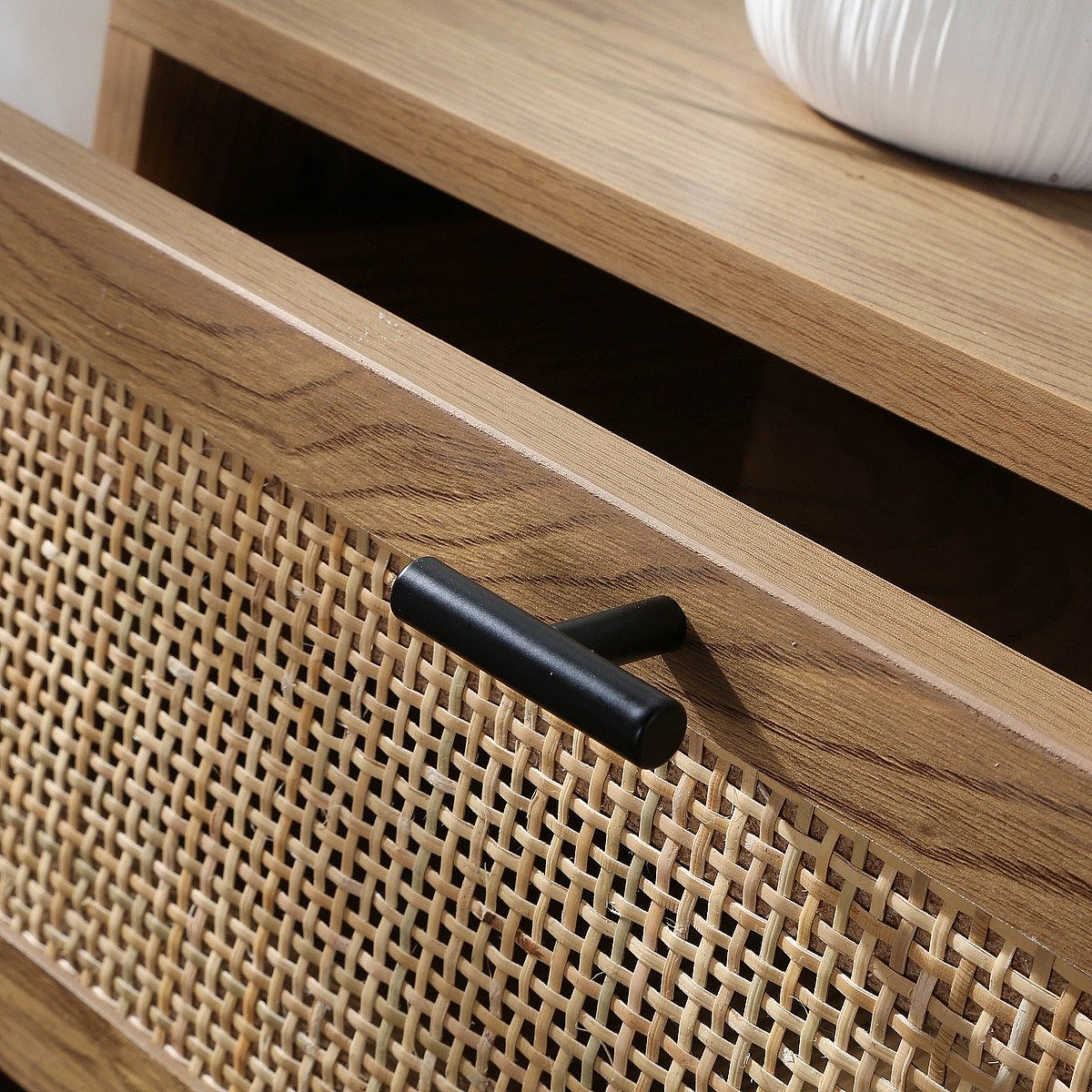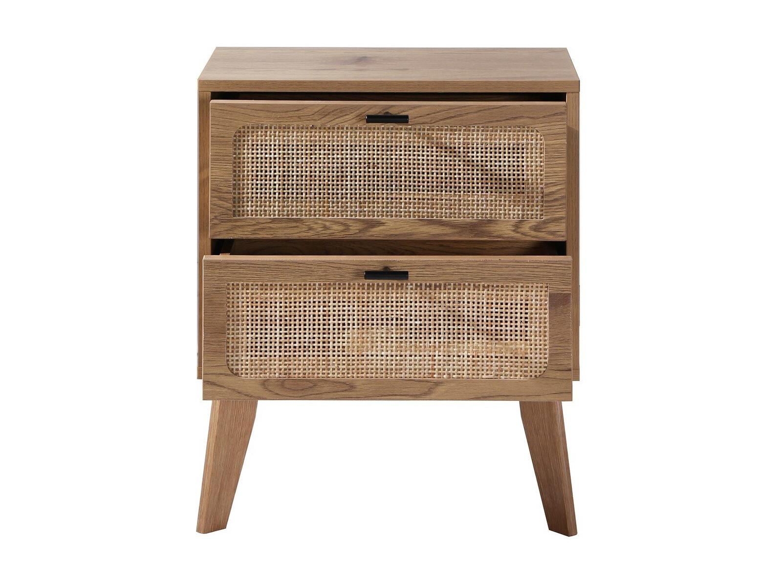 Chevet 2 Tiroirs décor bois avec Façades en Rotin L45 cm - ALIA