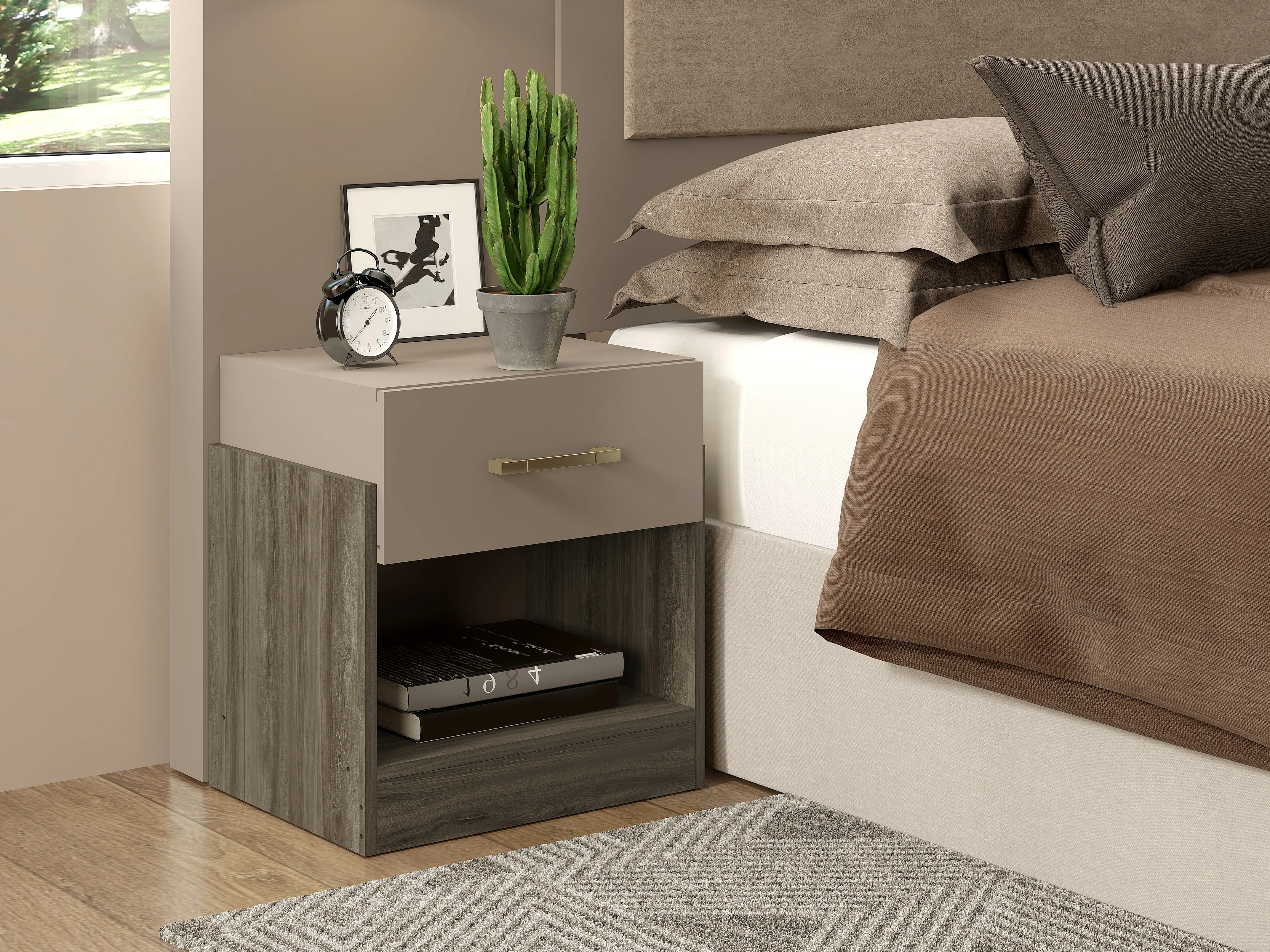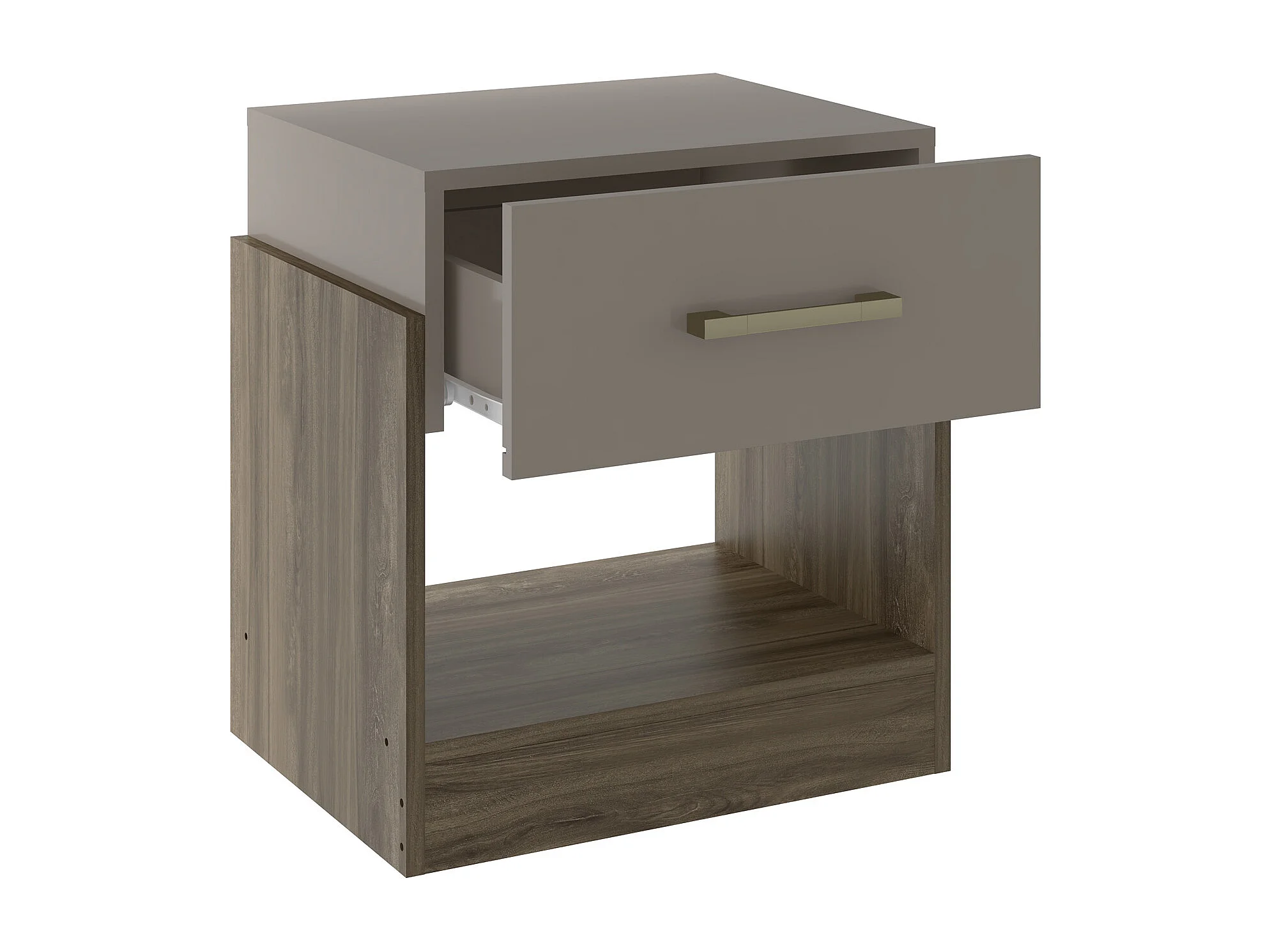 Table de chevet 1 tiroir et 1 niche - Coloris : Taupe et marron - BODIL II