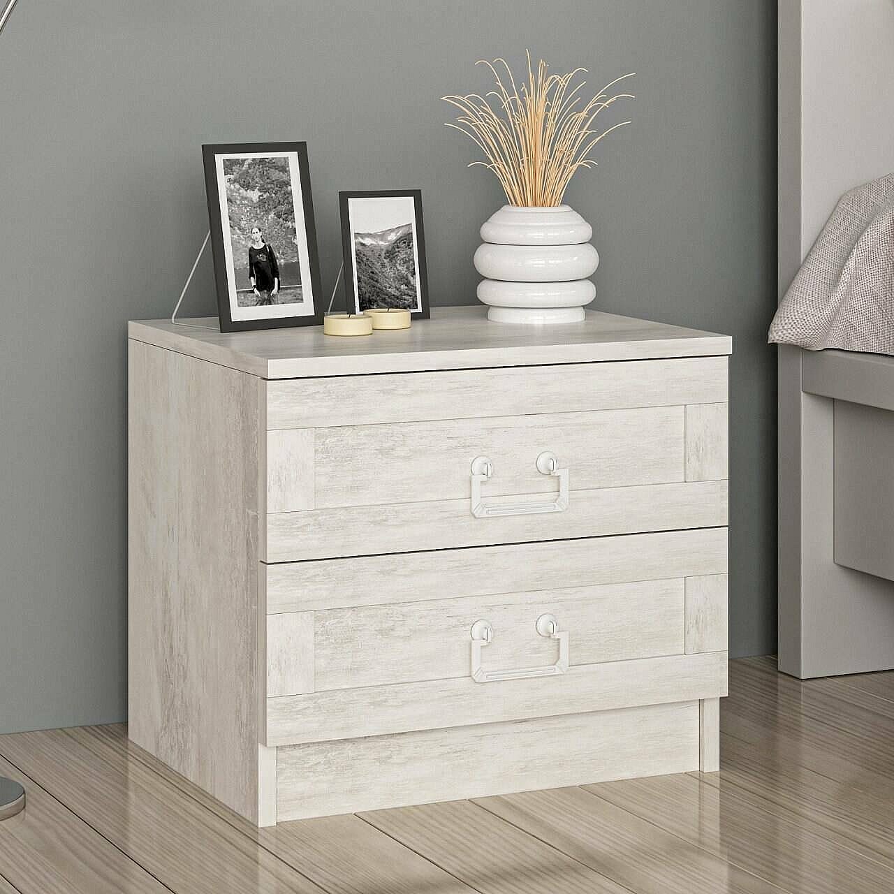 Chevet Dholdene, Commode basse, Table de nuit, Étagère de chevet, 54x47 h40 cm, Blanc