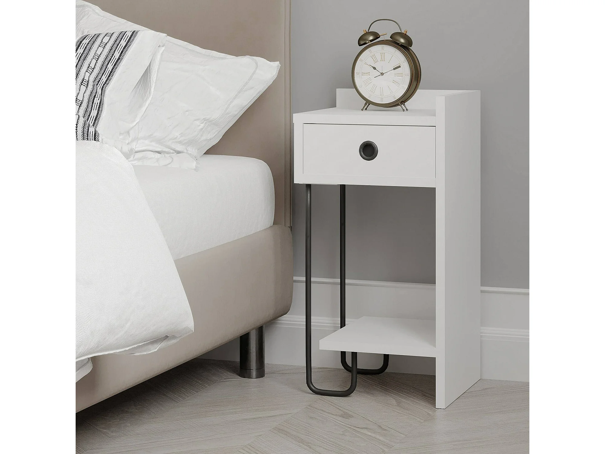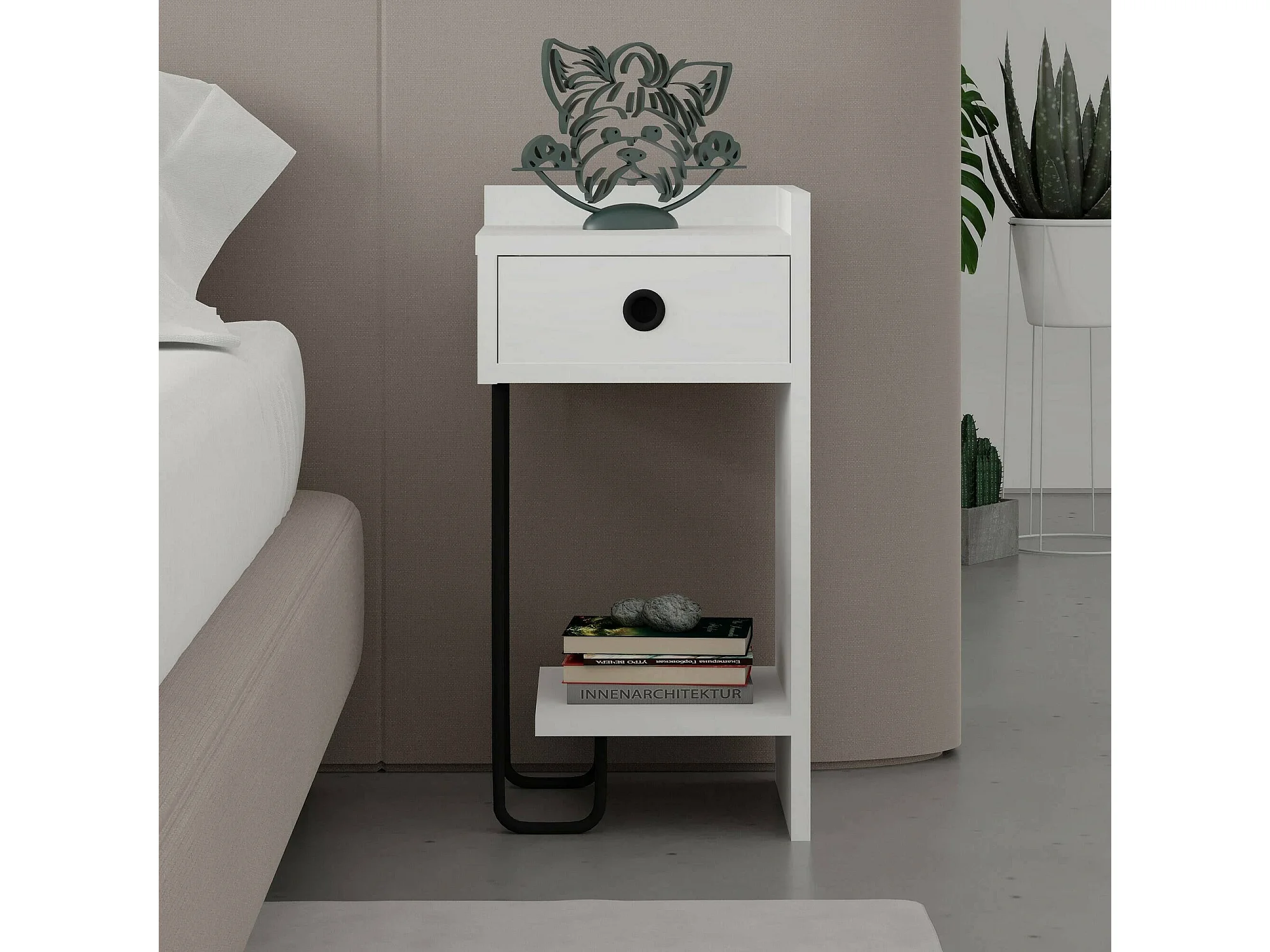 Chevet Dpodgorean, Commode basse, Table de nuit, Étagère de chevet, 32x30 h61 cm, Blanc