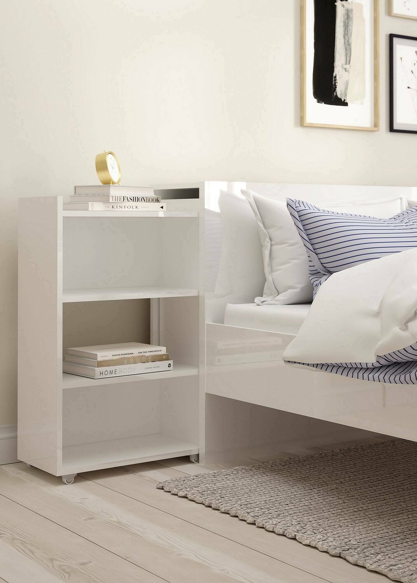 Chevet Drot, Commode basse, Table de nuit, Étagère de chevet, 165x26 h80 cm, Blanc