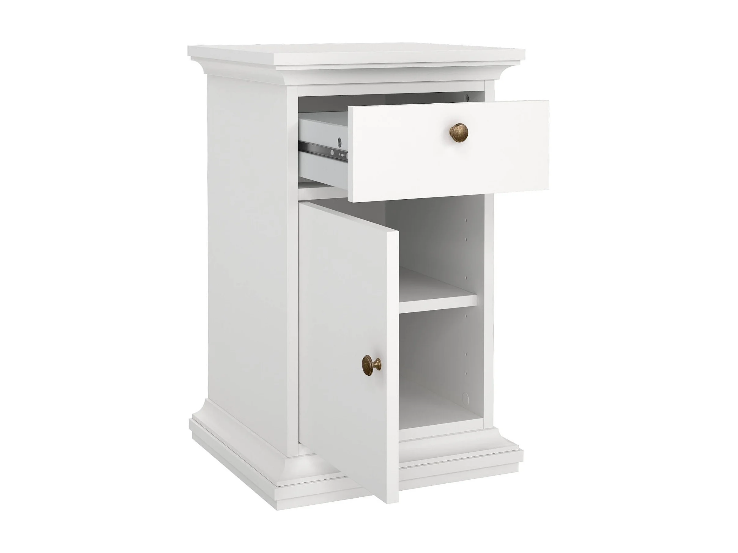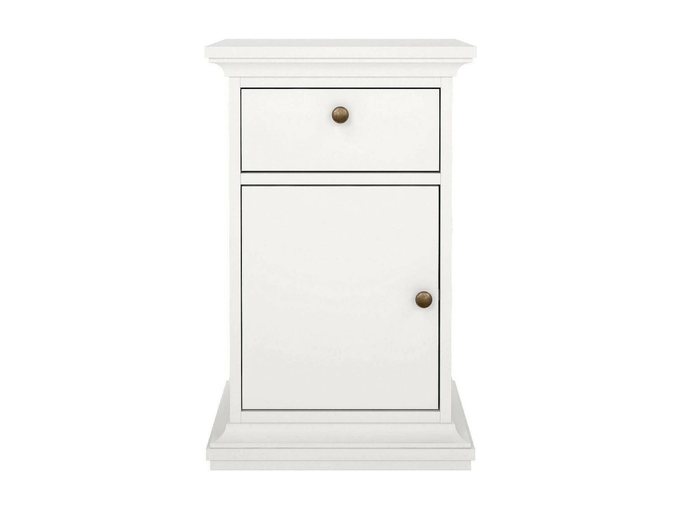 Chevet Drrahman, Commode basse, Table de nuit, Étagère de chevet, 44x40 h70 cm, Blanc