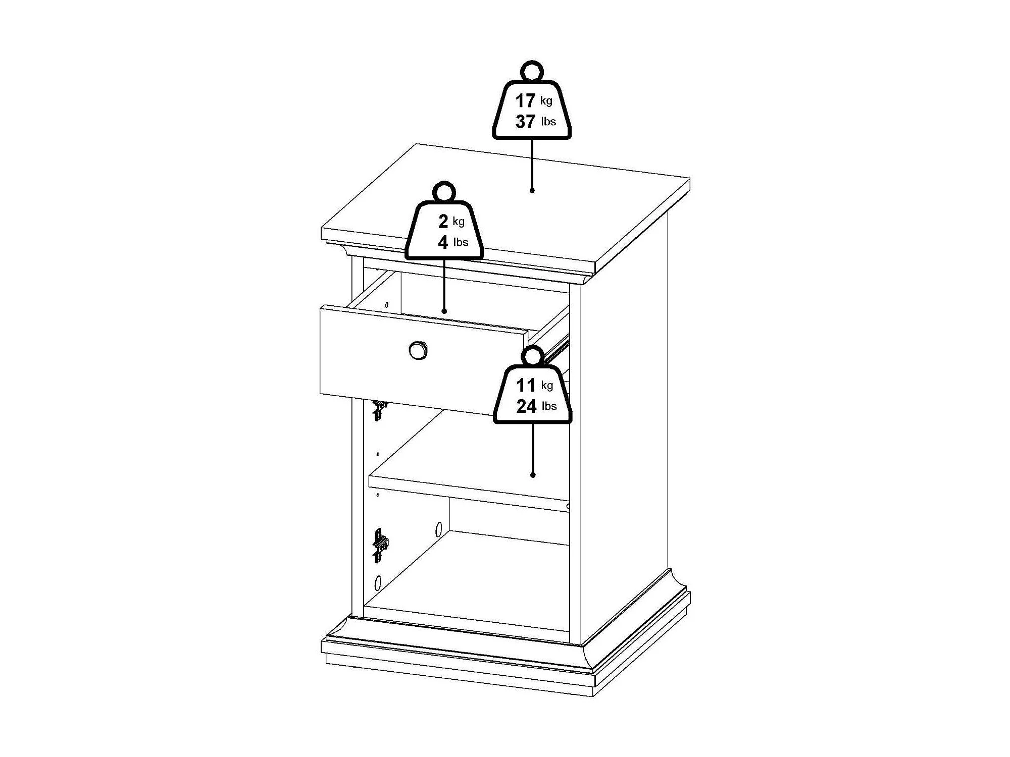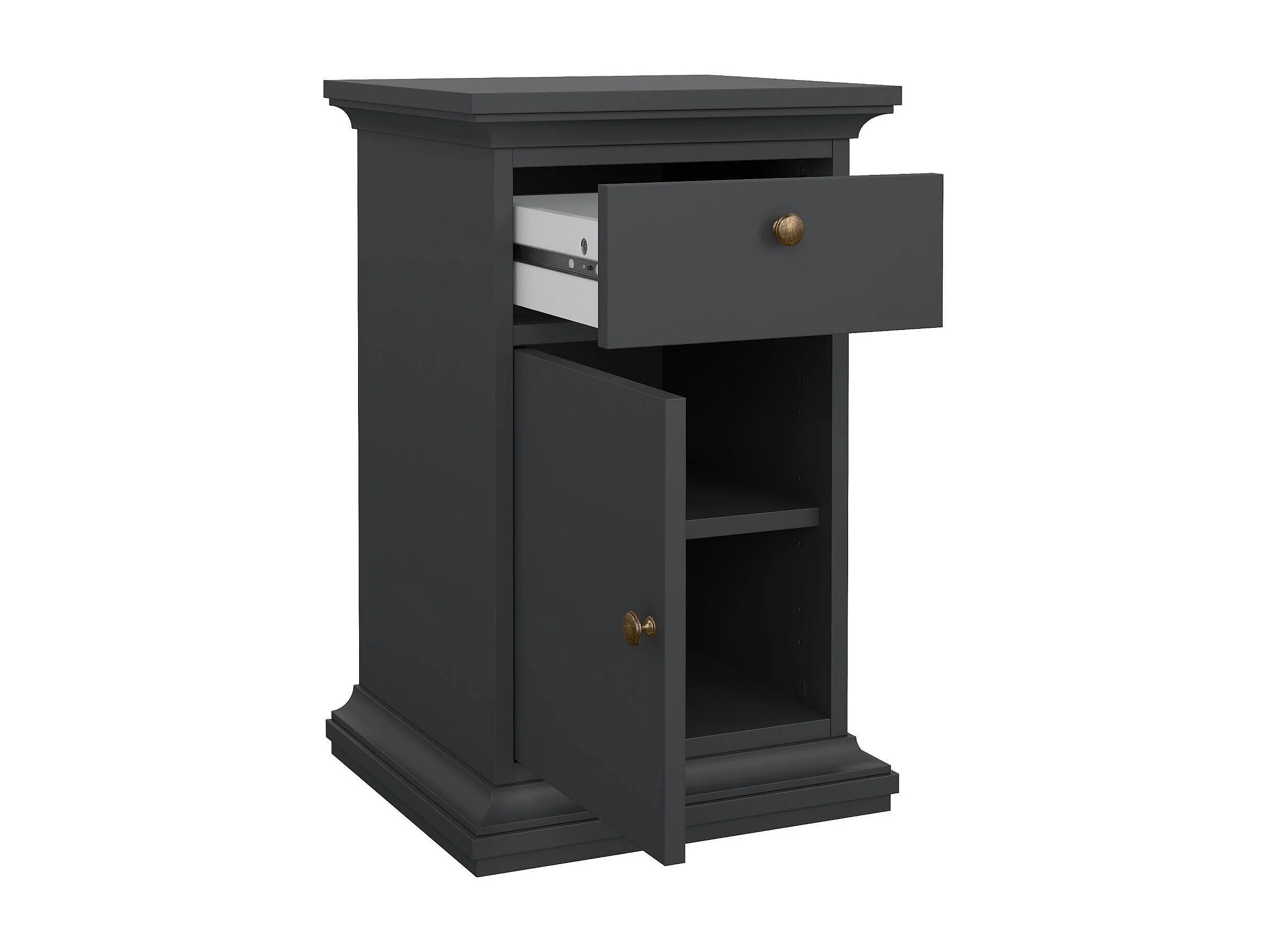 Chevet Drrahman, Commode basse, Table de nuit, Étagère de chevet, 44x40 h70 cm, Gris