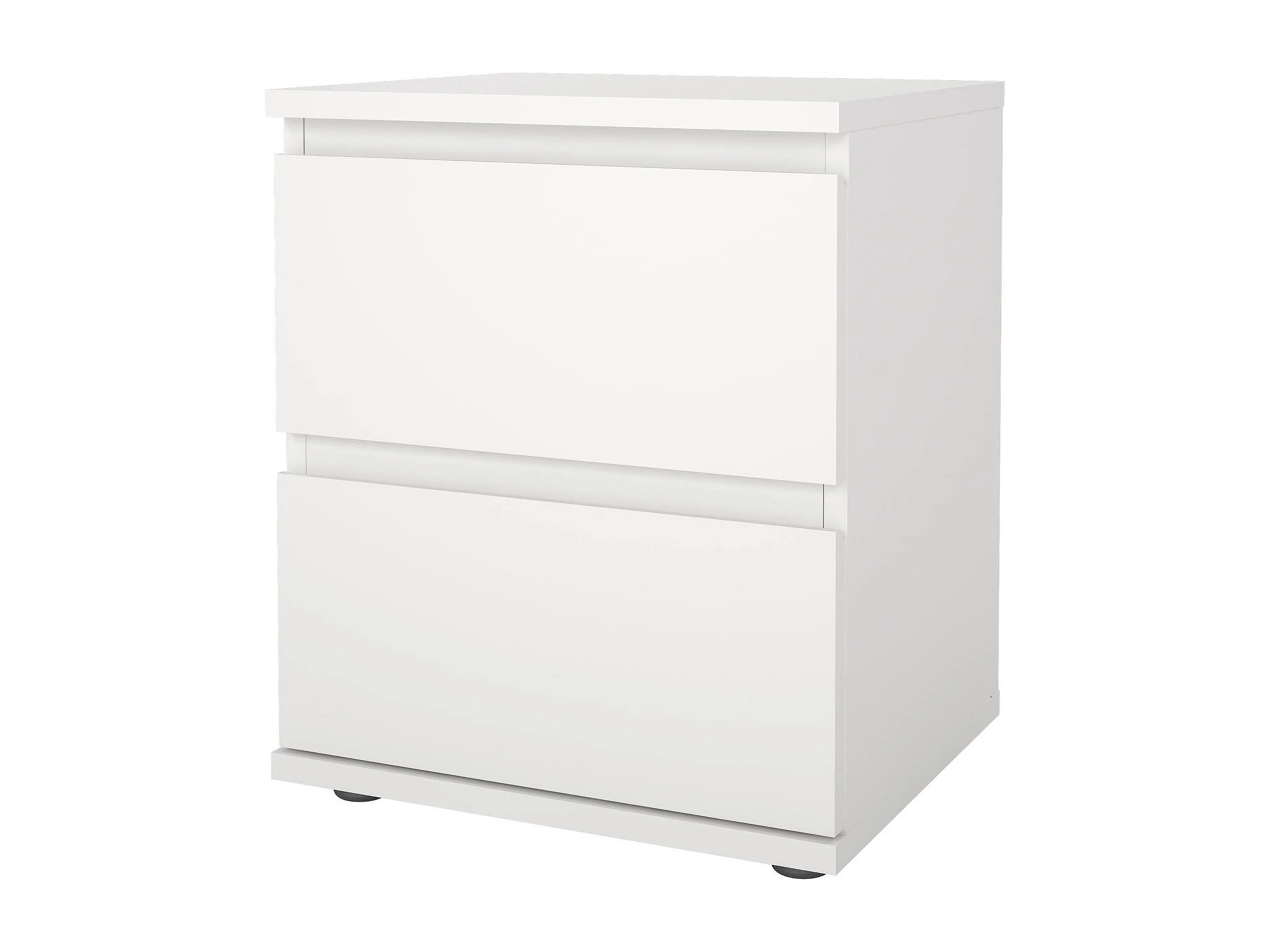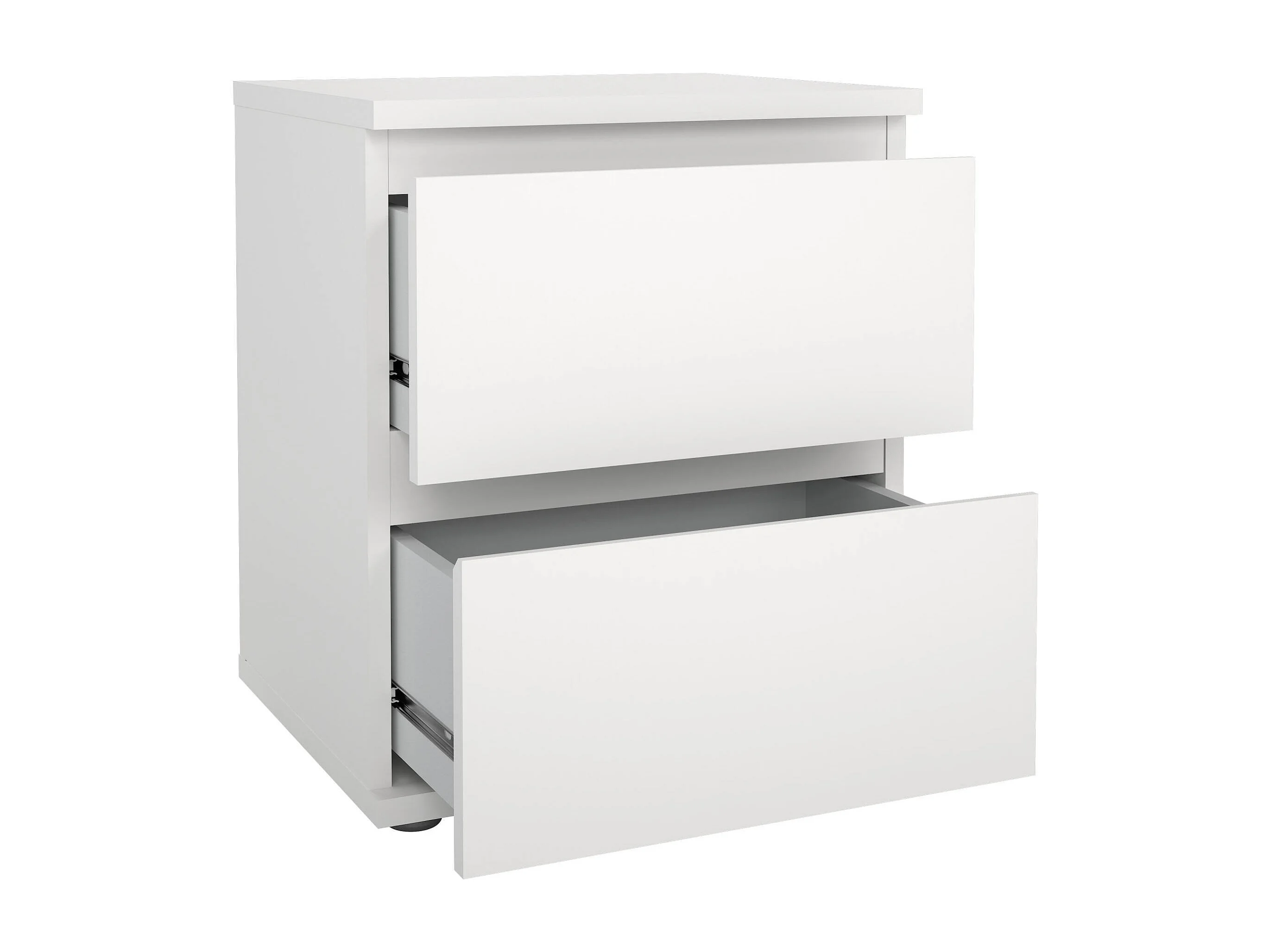 Table de chevet Nashville, Table de chevet 2 tiroirs, Table de nuit, Commode basse pour chambre, 50x34h49 cm, Blanc brillant