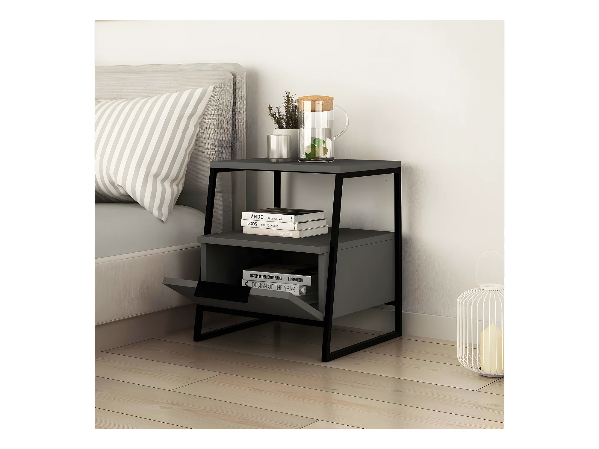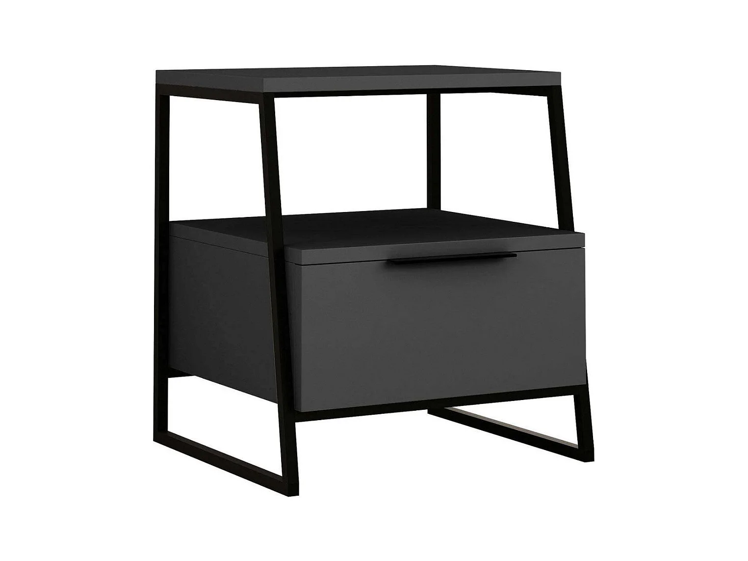 Table de chevet 1 tiroir Tekapo Métal Noir et Bois Anthracite