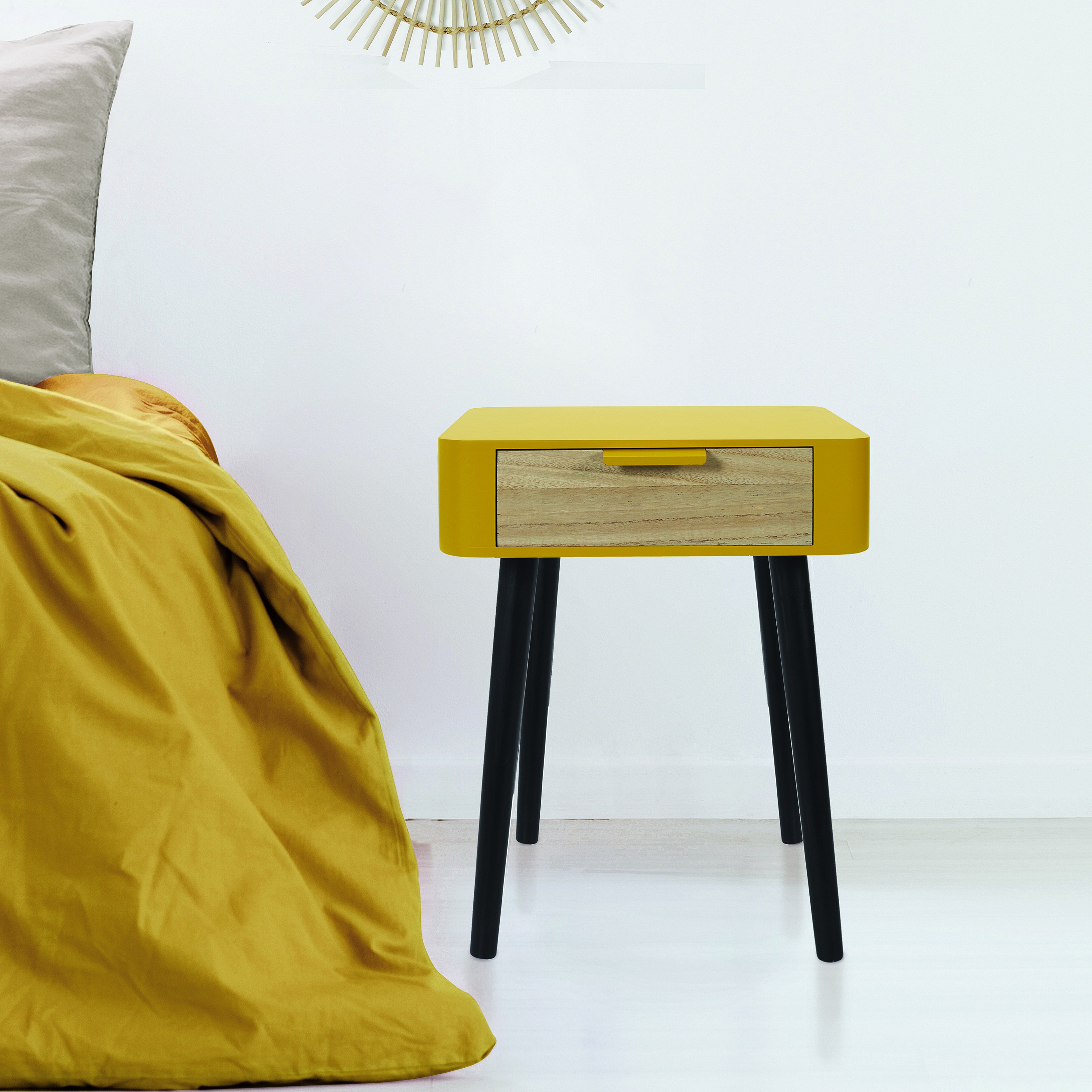 Chevet 1 Tiroir En Bois Jaune Moutarde Jaune
