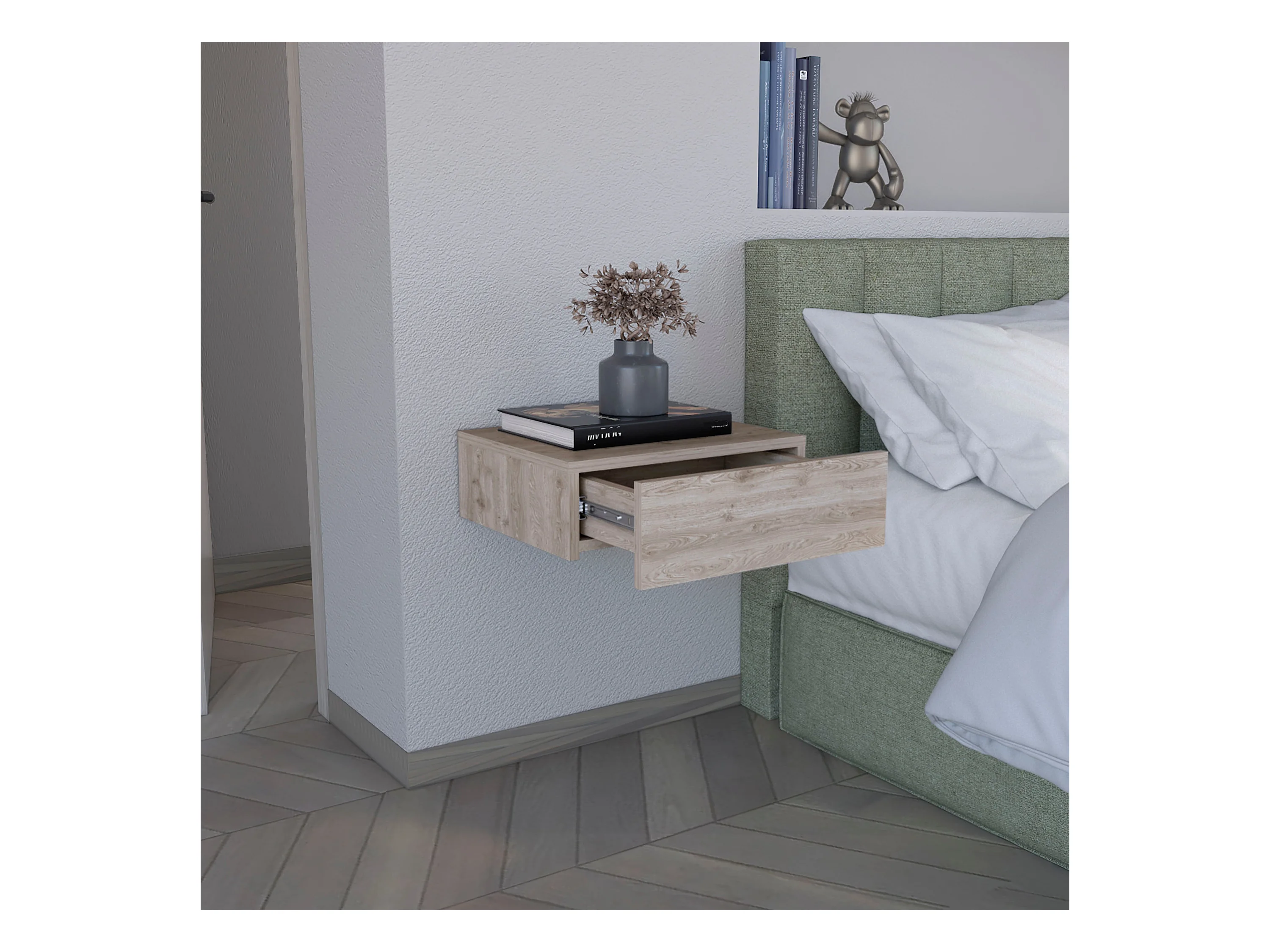 Chevet flottant Milano en mélamine avec un tiroir à rails métalliques, beige, 13 cm X 40 cm X 34.1 cm