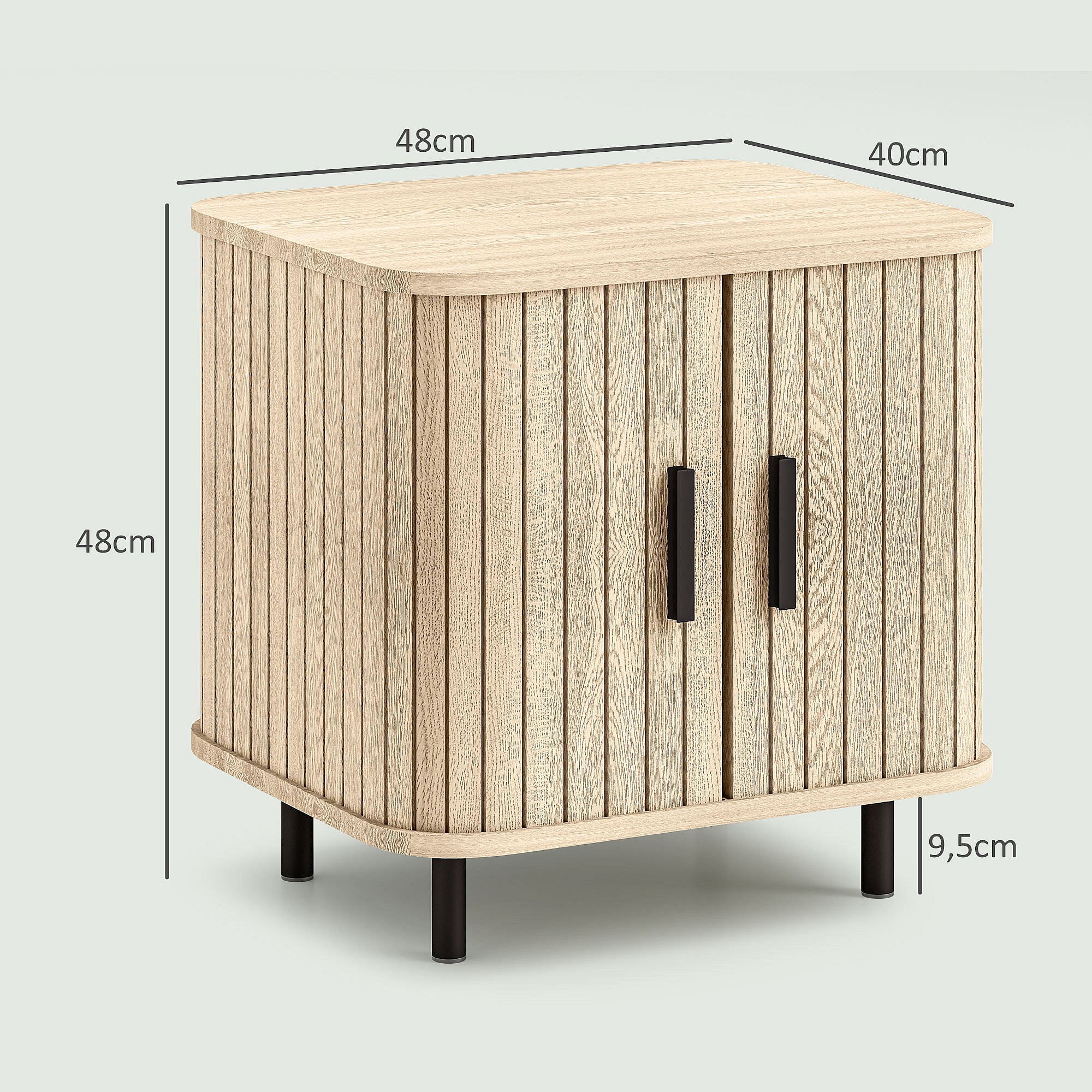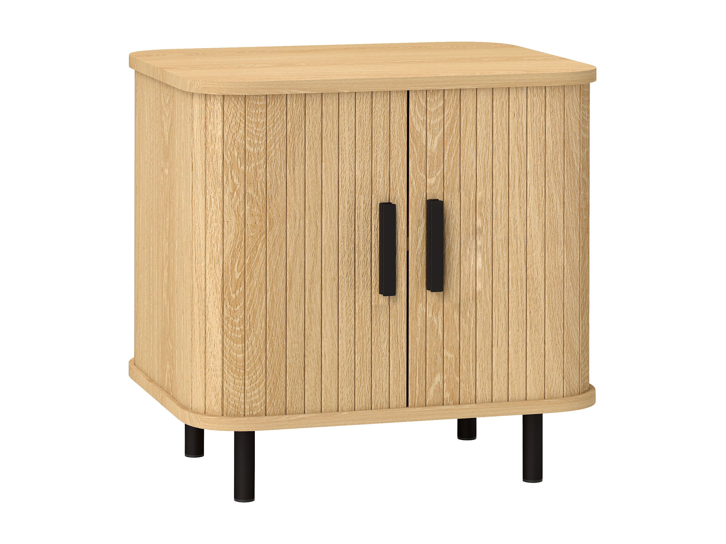 Chevet table d'appoint style Shabby Chic - 2 portes coulissantes - acier aspect bois clair vieilli