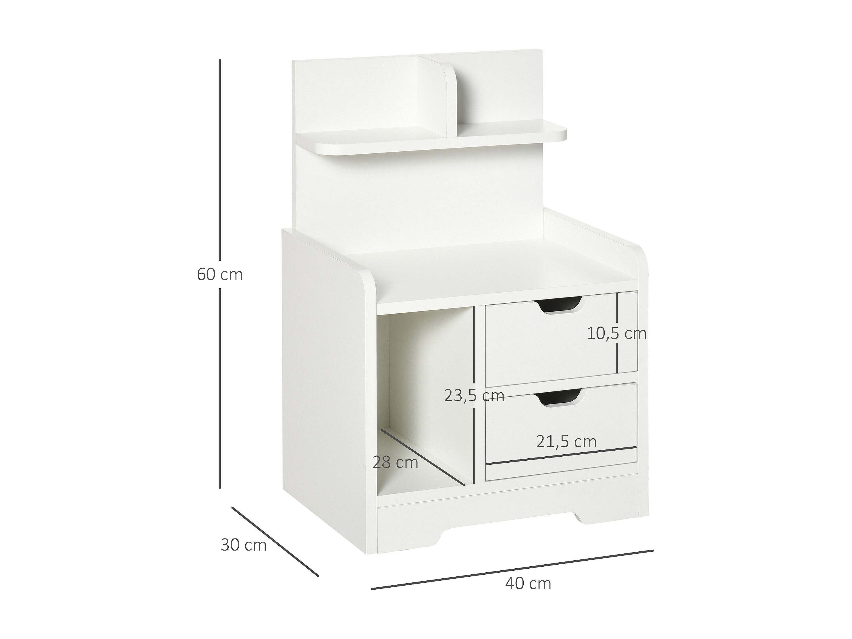 Chevet table de nuit multi-rangement 2 tiroirs niche étagère plateau panneaux particules blanc