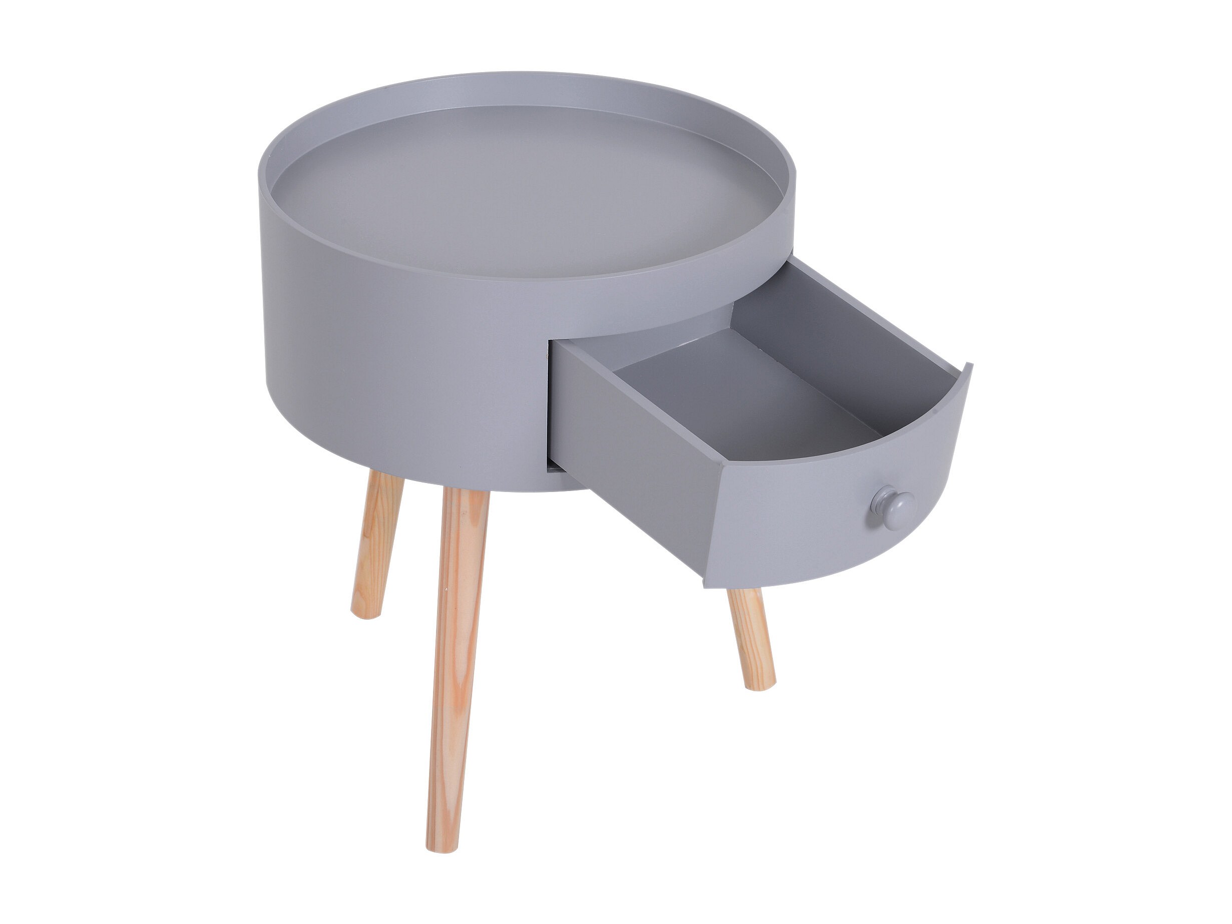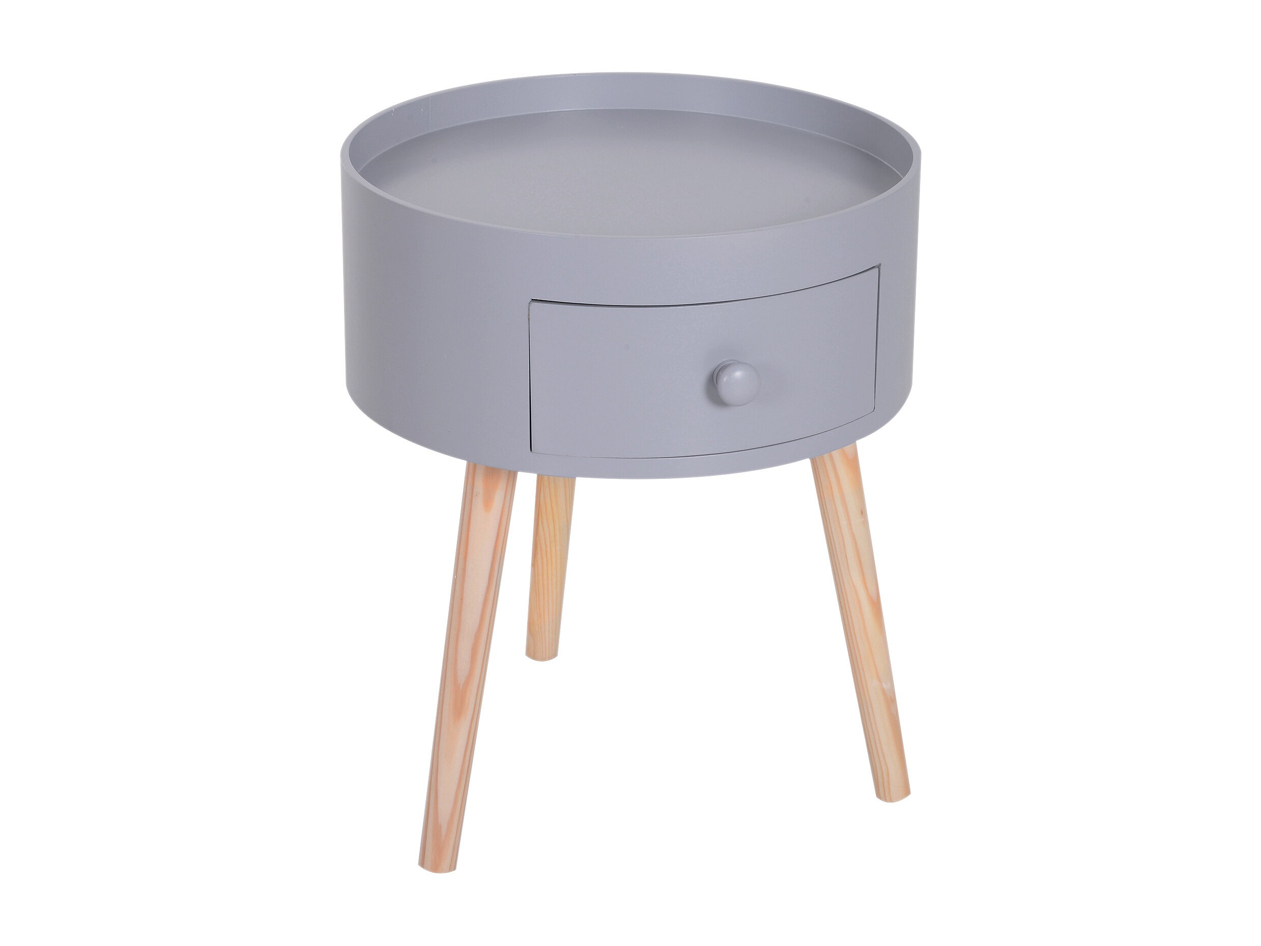 Chevet table de nuit ronde design scandinave tiroir bicolore pieds effilés inclinés bois massif chêne clair gris