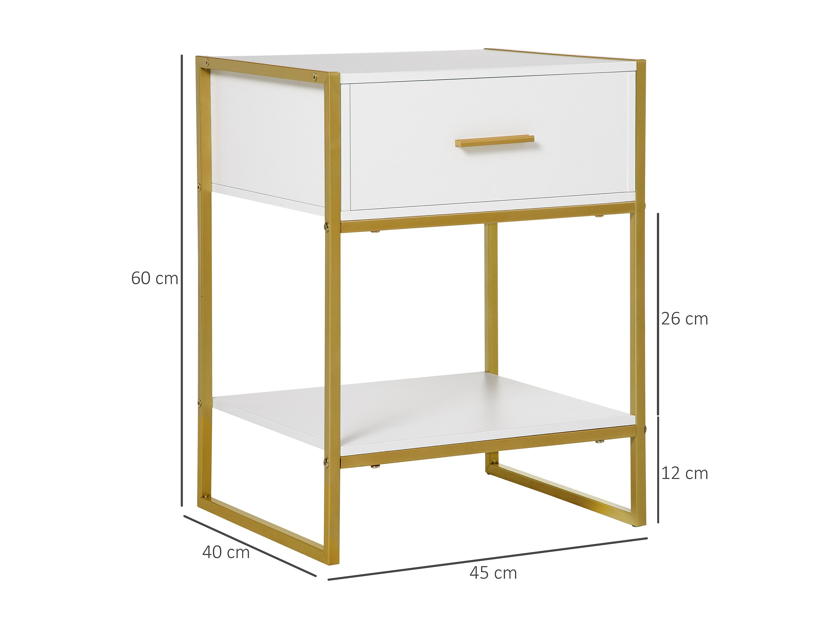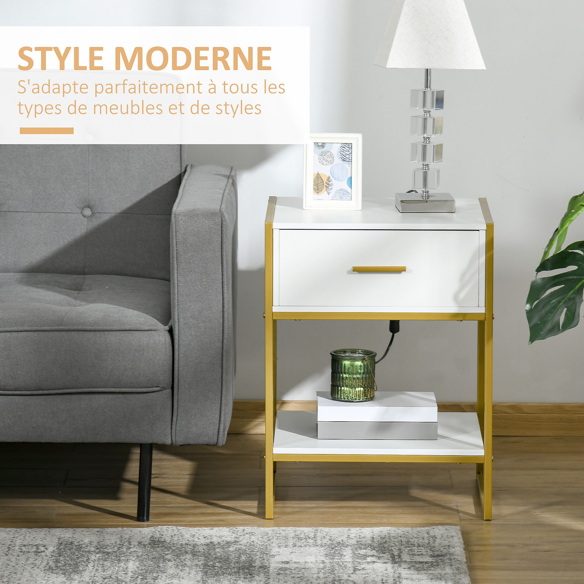 Chevet table de nuit style art déco - tiroir, étagère - acier doré panneaux blanc
