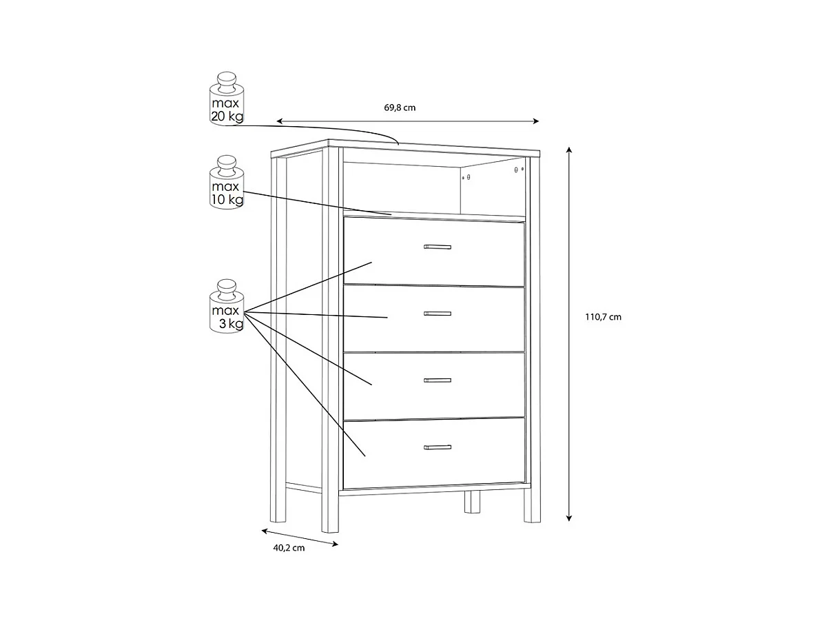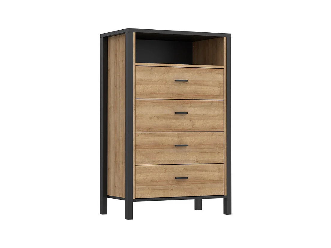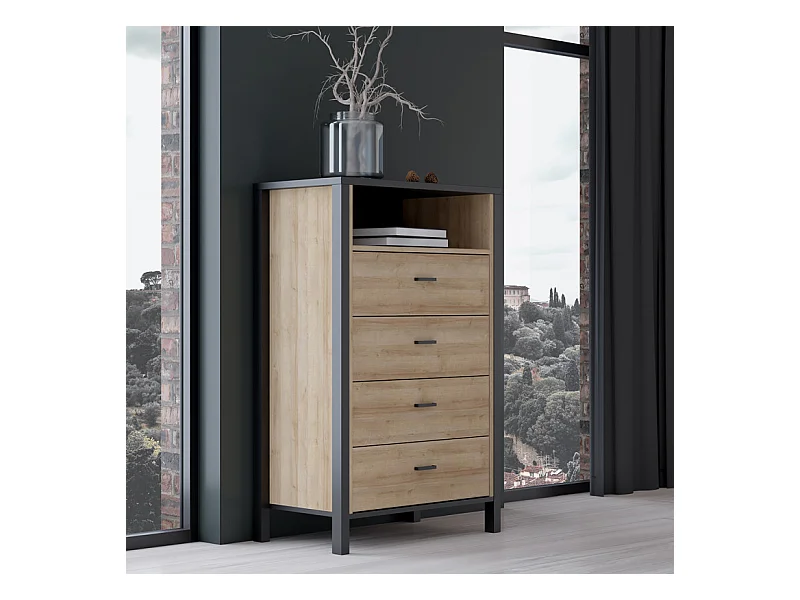 Chiffonnier 4 tiroirs 1 niche décor noir et bois chêne - MODE