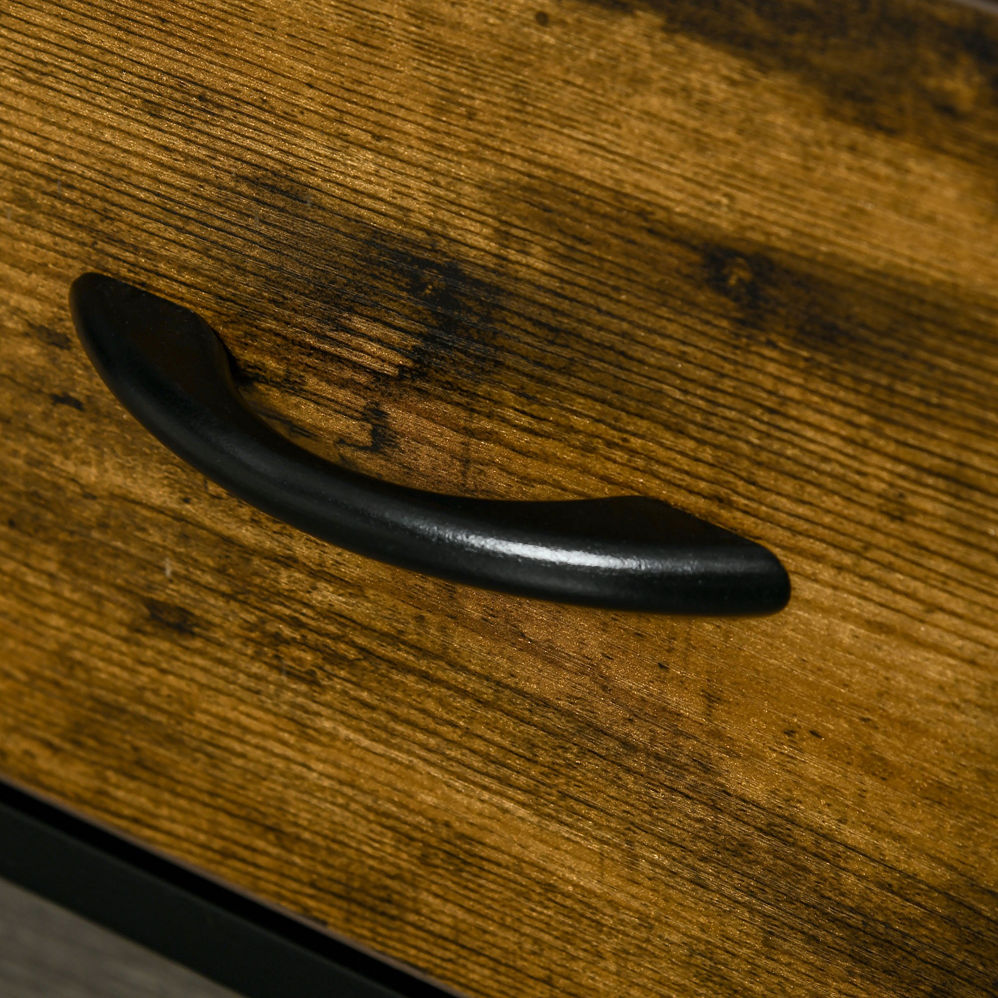 Chiffonnier design industriel - 2 tiroirs, niche, plateau - châssis acier noir MDF aspect bois avec veinage