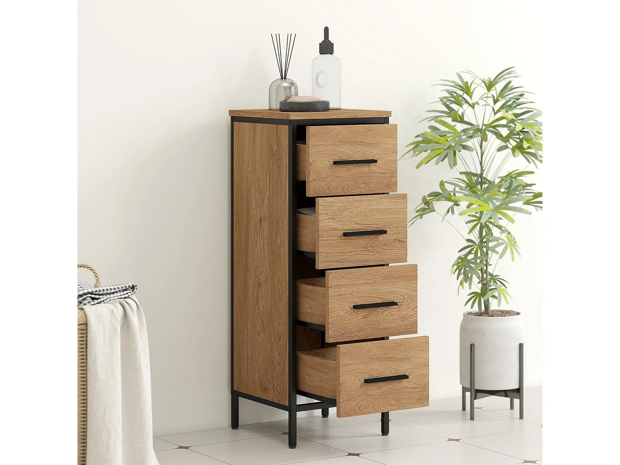 Chiffonnier industriel bois et métal 4 tiroirs dim. 30 x 30 x 82 cm
