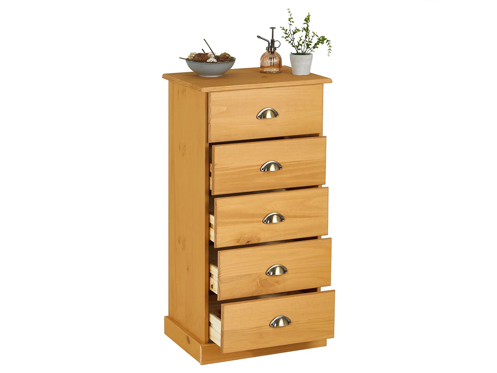 Chiffonnier PARIS commode avec 5 tiroirs en pin massif lasuré brun