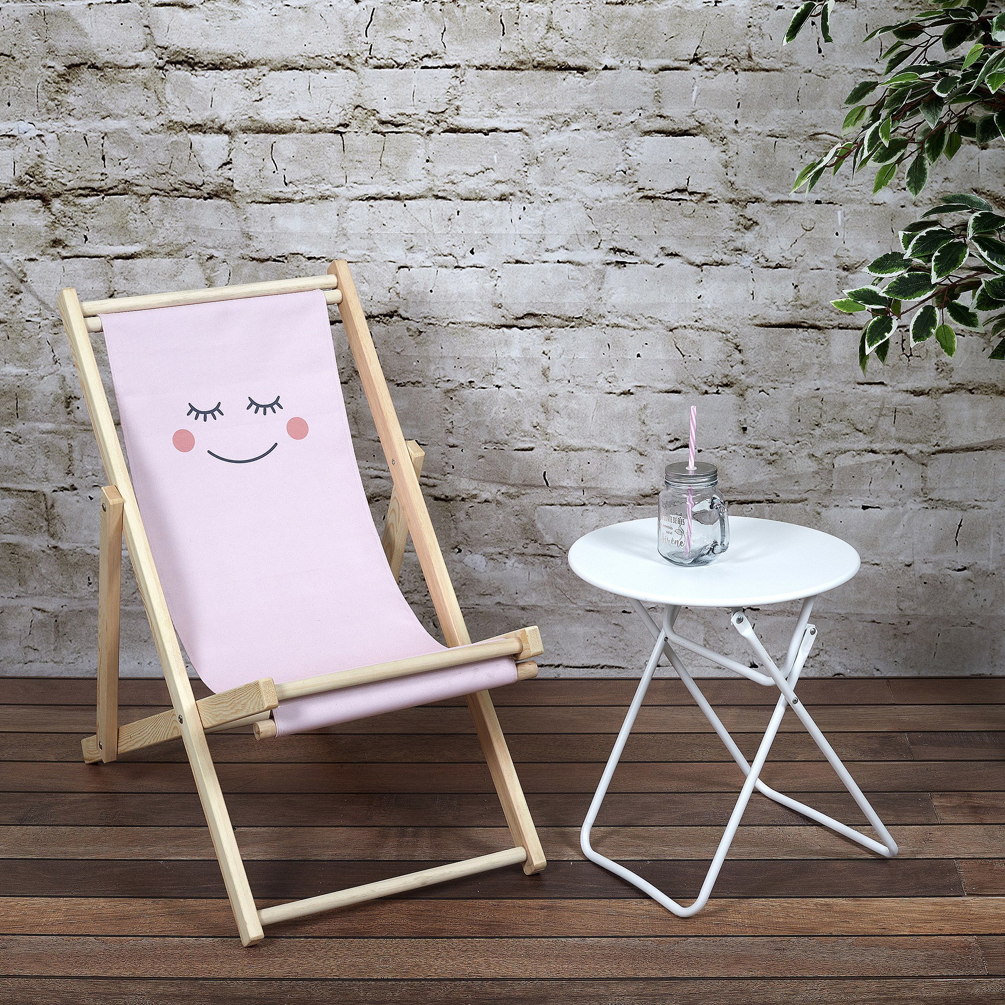 Lit de repos d'extérieur avec auvent et oreiller rose