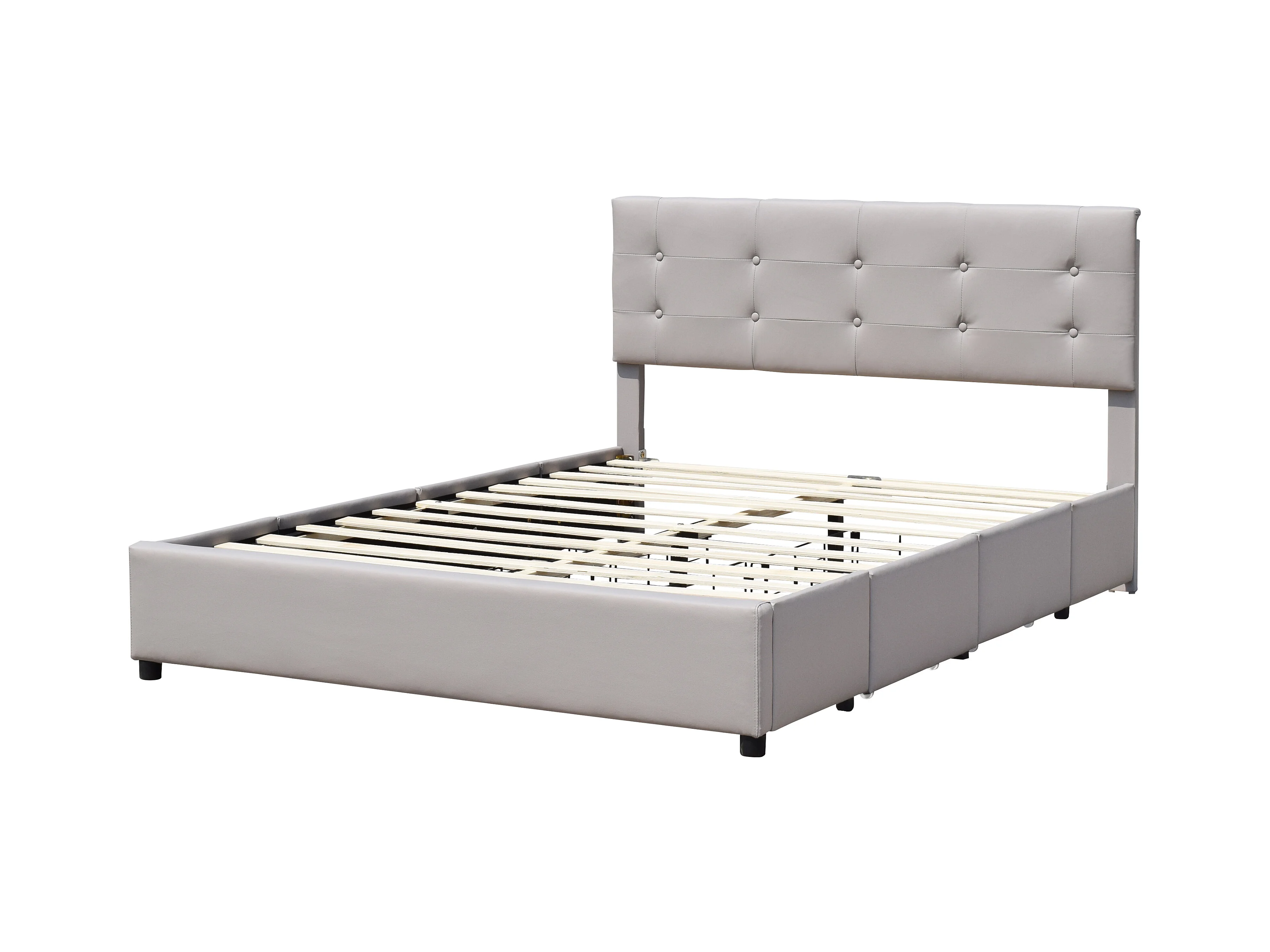 chloe - Solide et Confortable Lit 140x190 avec Sommier avec 4 tiroirs Tete de lit Couleur GRIS Pieds en 4 cm
